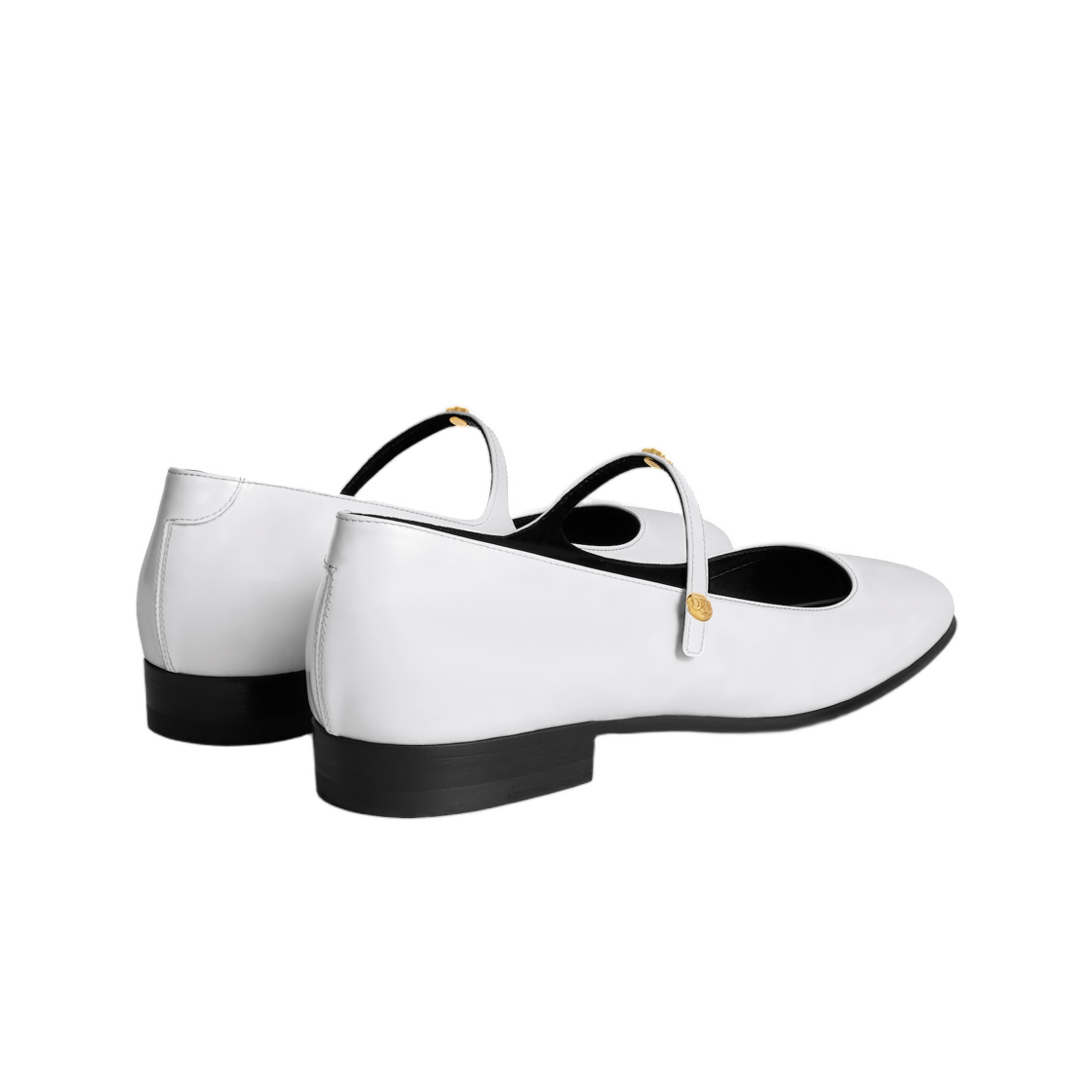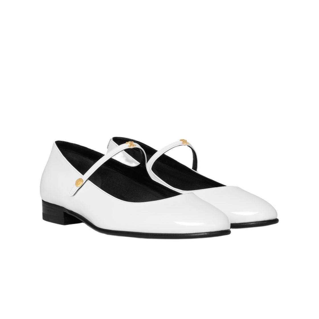 (W) Celine City MaryJane Ballerina In Glossy Calfskin Ultra White