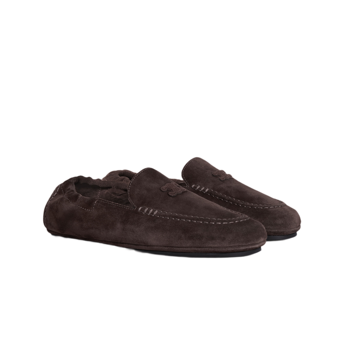 (W) Celine Adam Loafer In Suede Calfskin Dark Brown