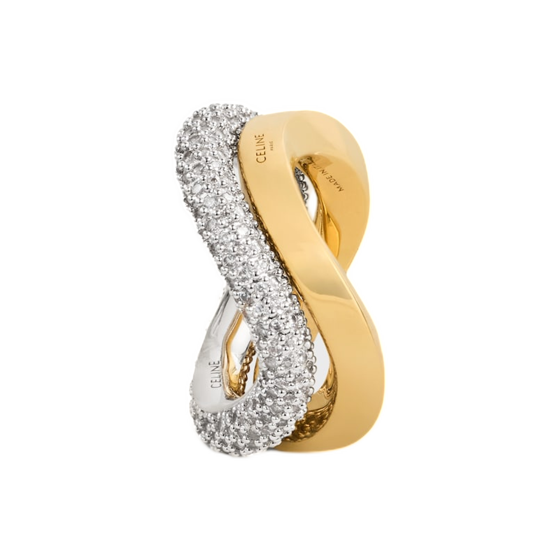 셀린느 폼 아브스트레이트 세트 오브 링즈 스트라스 앤 브래스 골드 앤 로듐 피니쉬 골드 실버