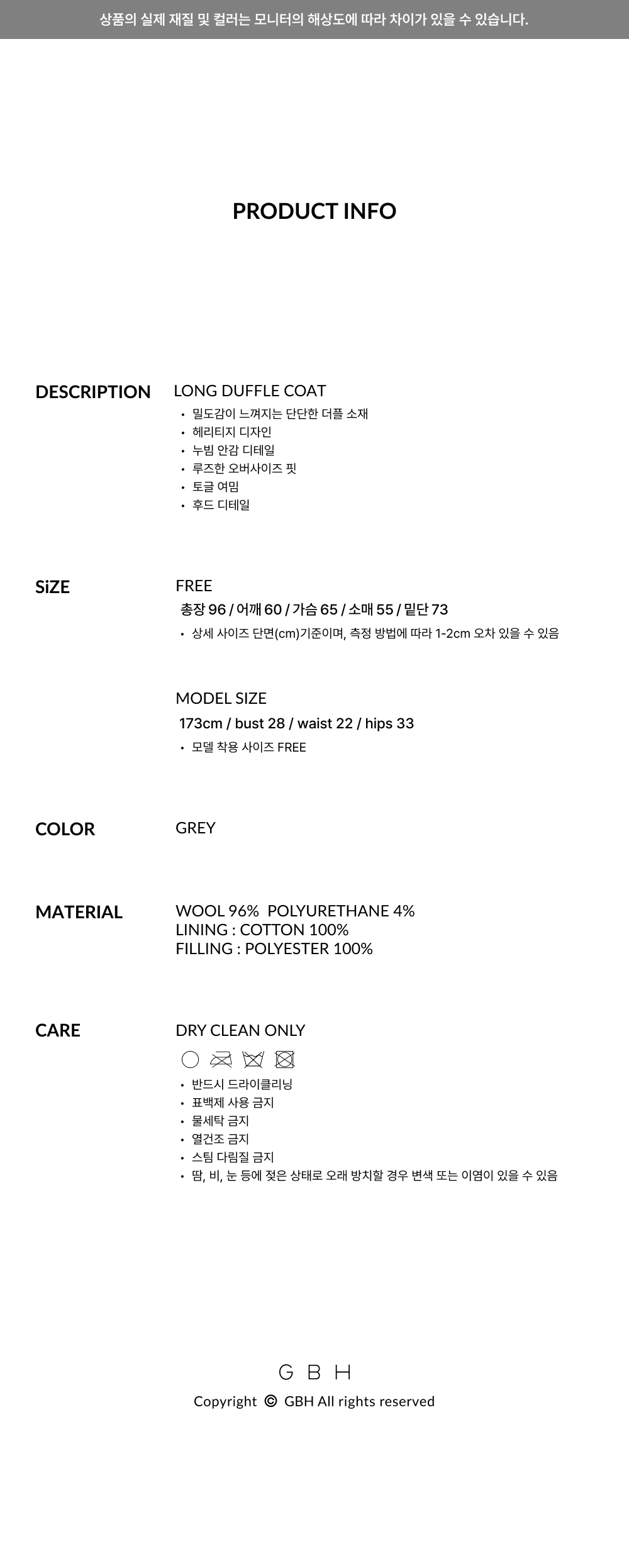 지비에이치 어페럴 롱 더플 코트 / 그레이