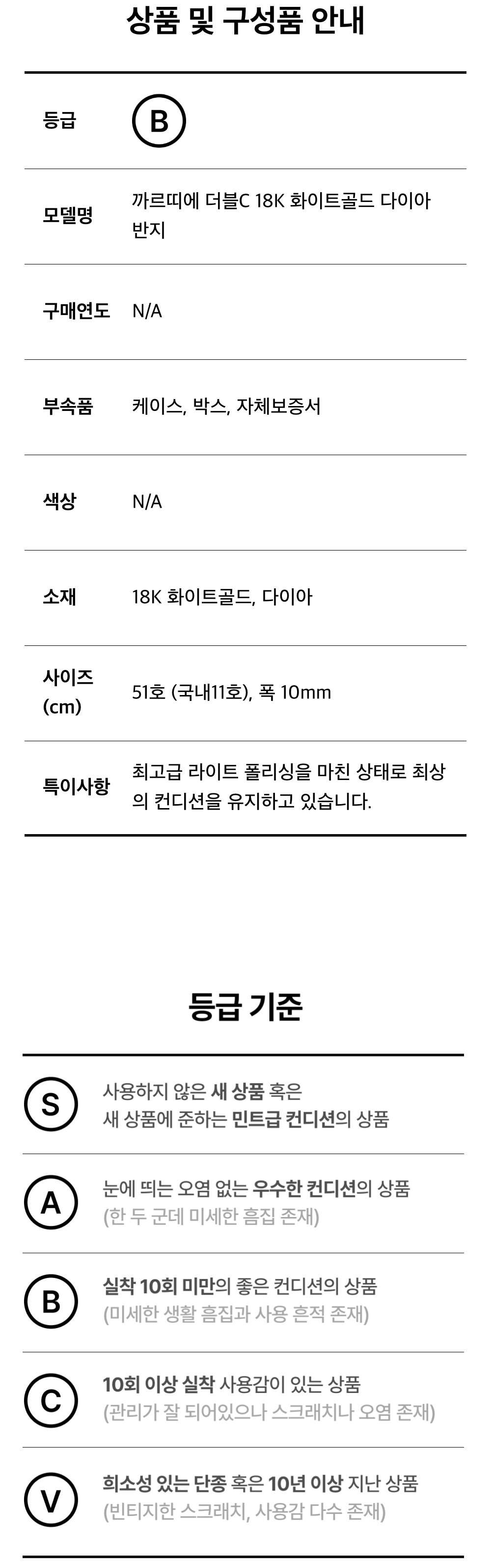 까르띠에 더블C 18K 화이트골드 다이아 반지 51호 국내11호