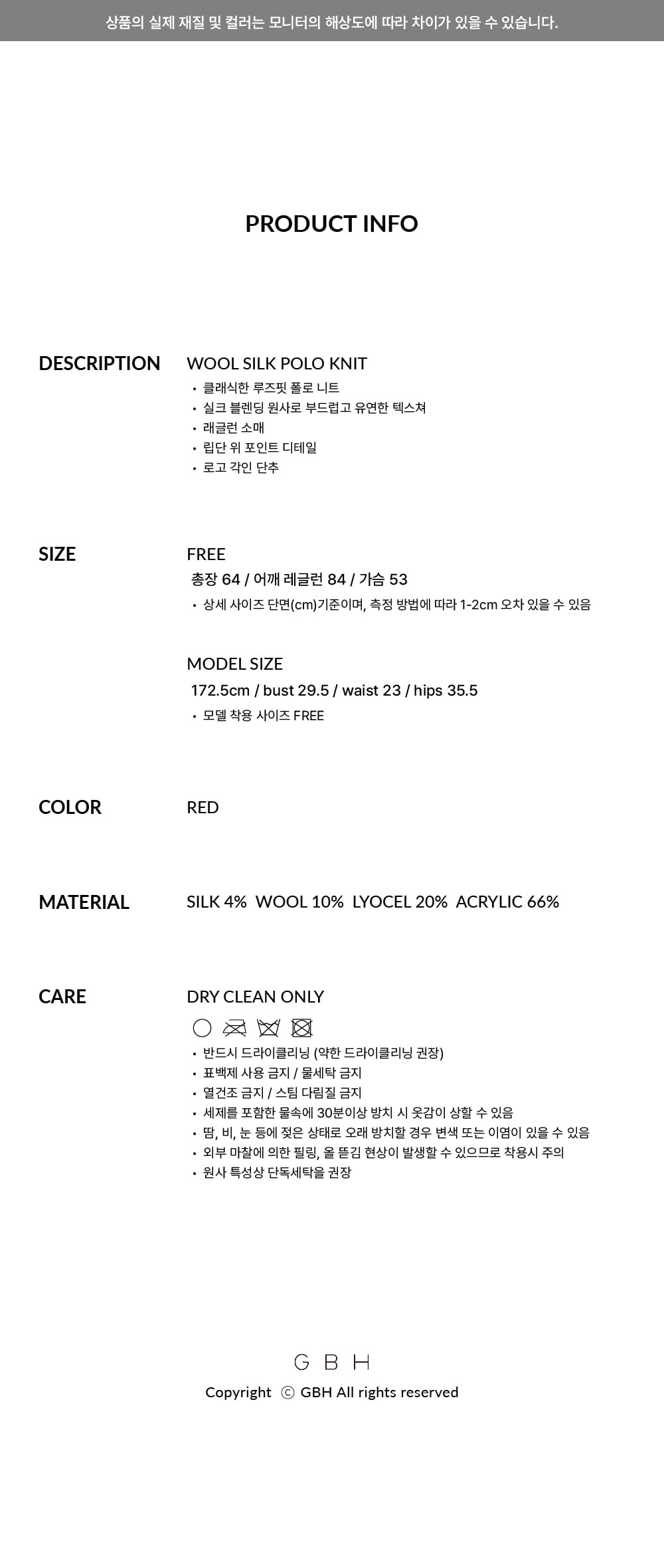 지비에이치 어페럴 울 실크 폴로 니트 / 레드