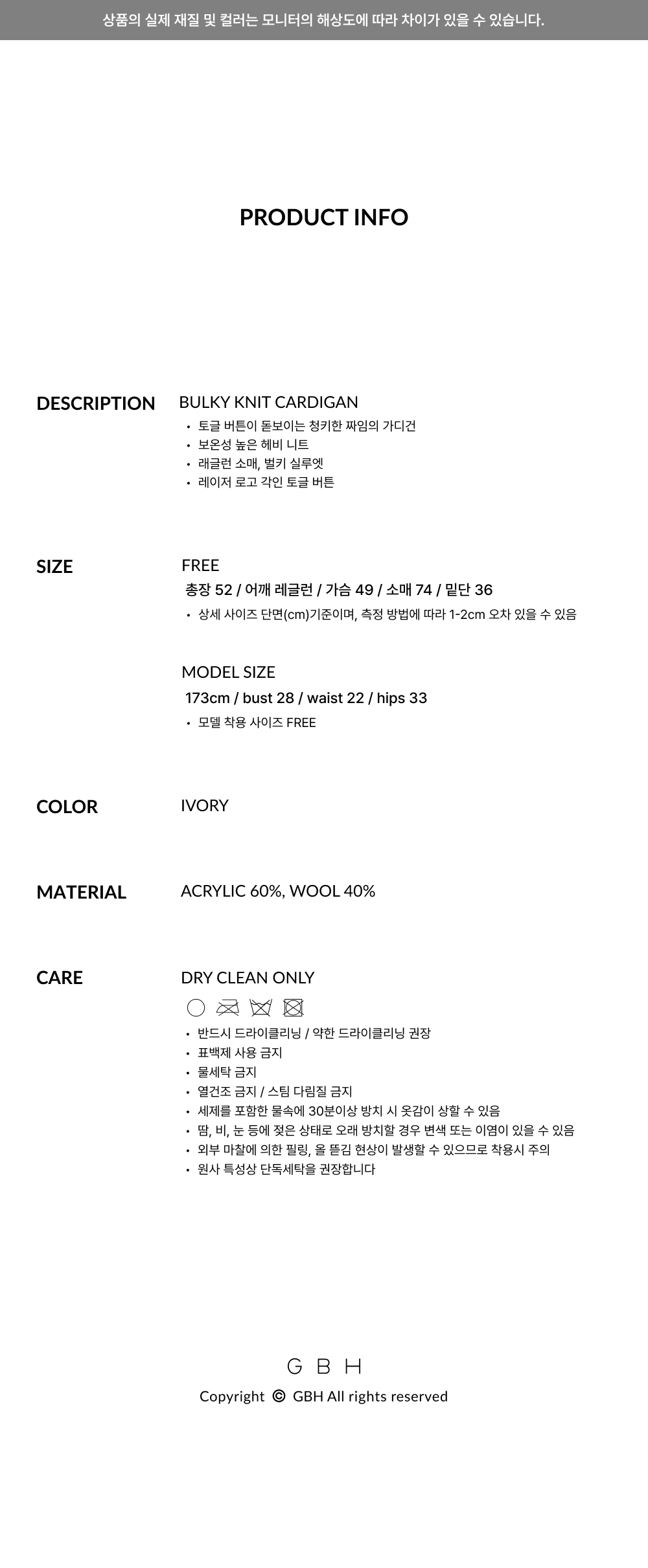지비에이치 어페럴 벌키 니트 가디건 / 아이보리