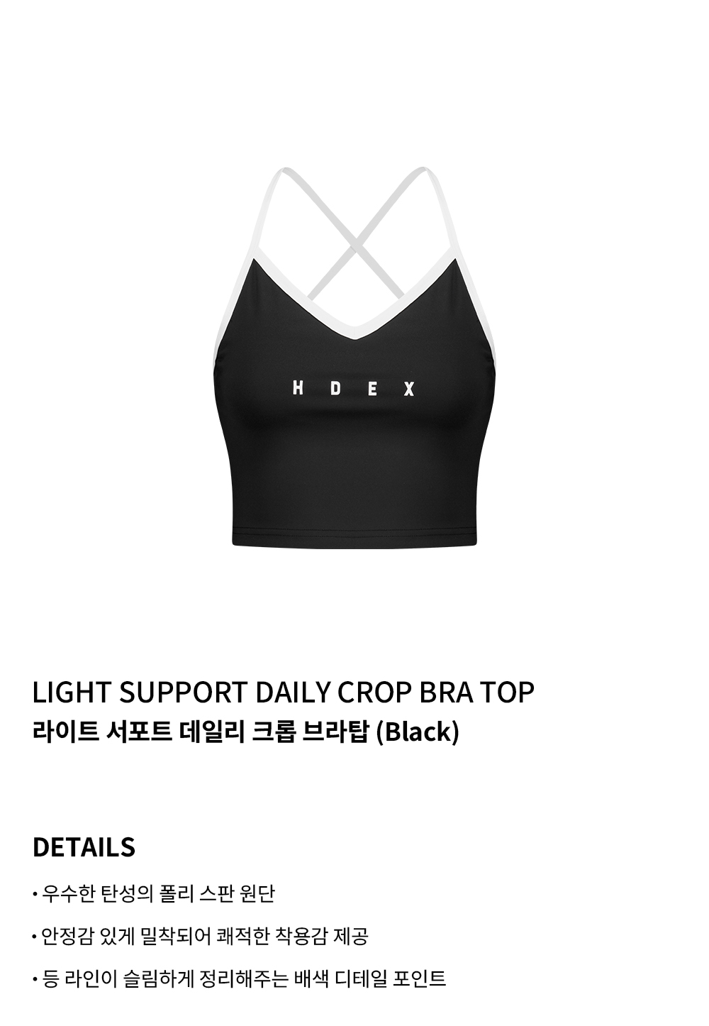 에이치덱스 라이트 서포트 데일리 크롭 브라탑 블랙