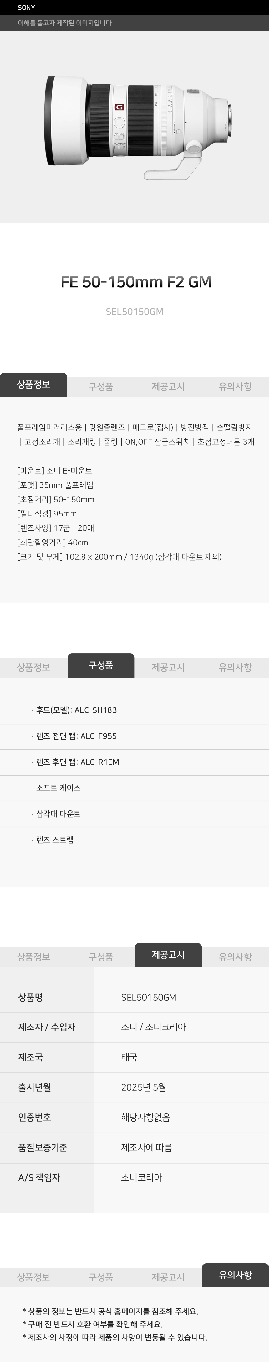소니카메라 FE 50-150mm F2 GM