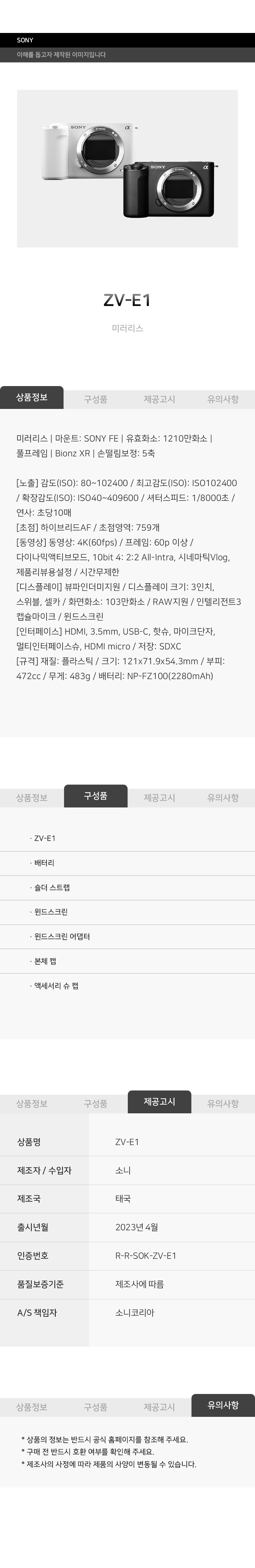 소니카메라 ZV-E1 블랙/화이트