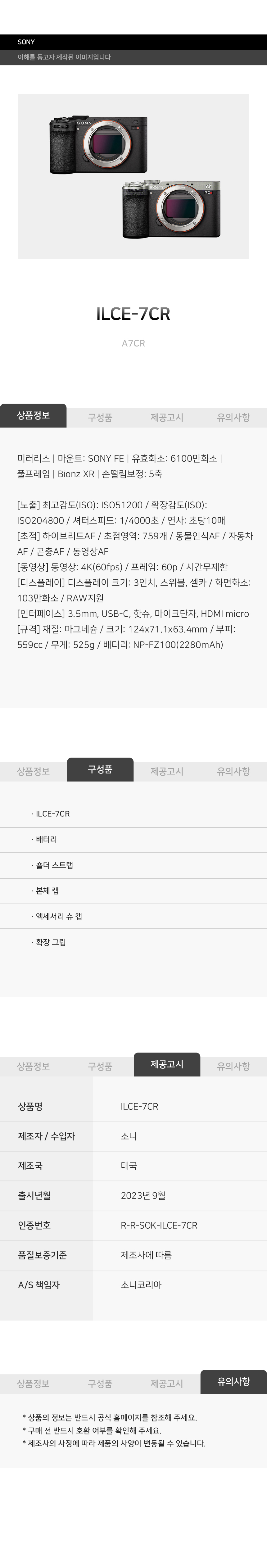 소니카메라 A7CR 바디 블랙/실버