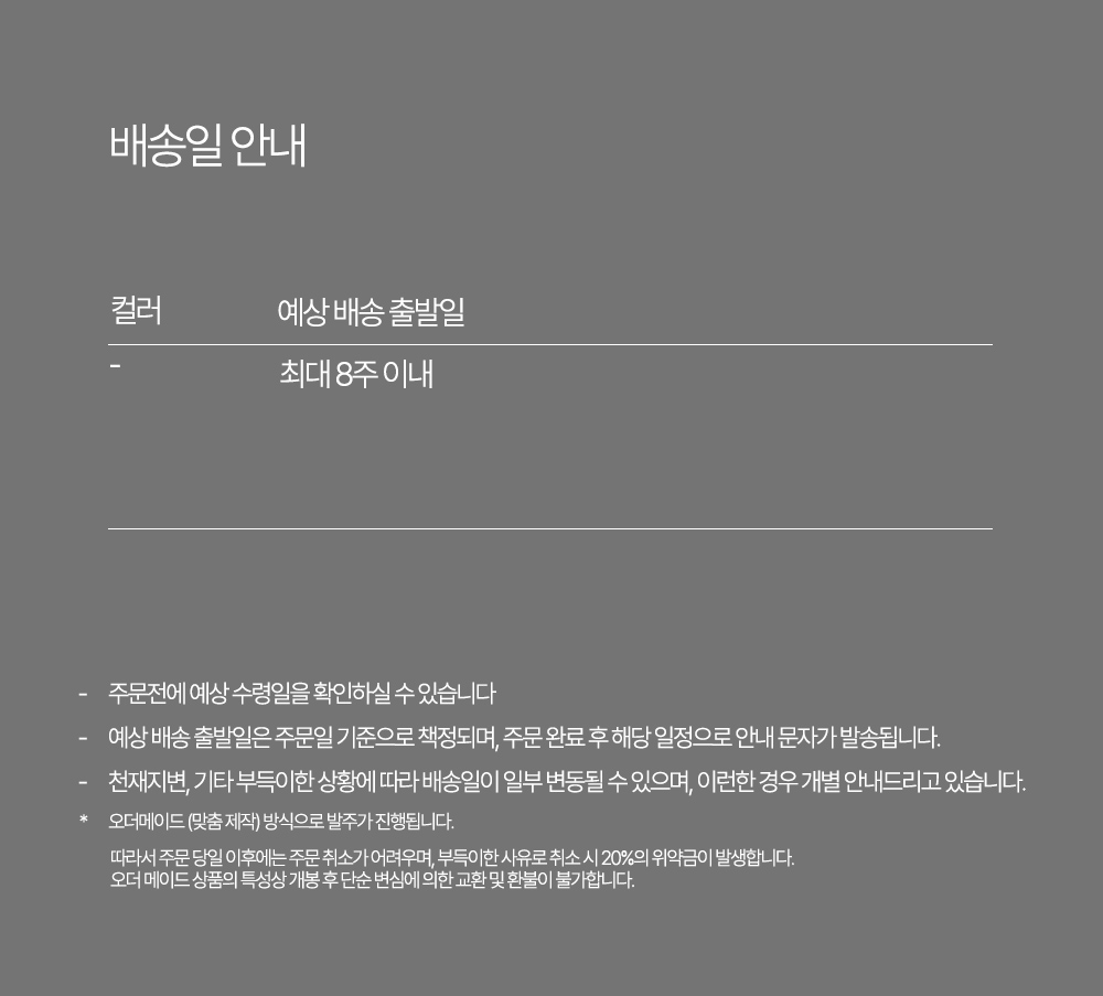 브랜드배송 무료 주문확인 후 90일 내 출고 예정