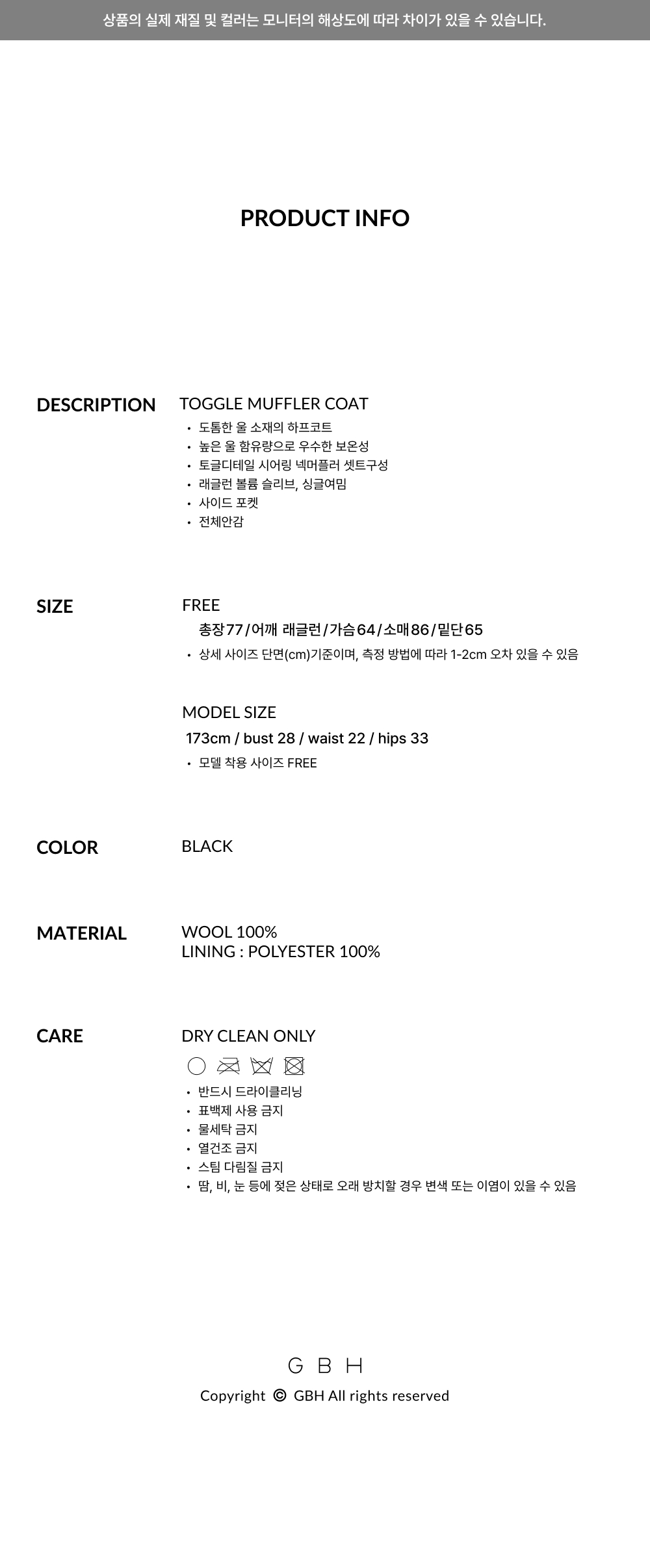 지비에이치 어페럴 토글 머플러 코트 / 블랙