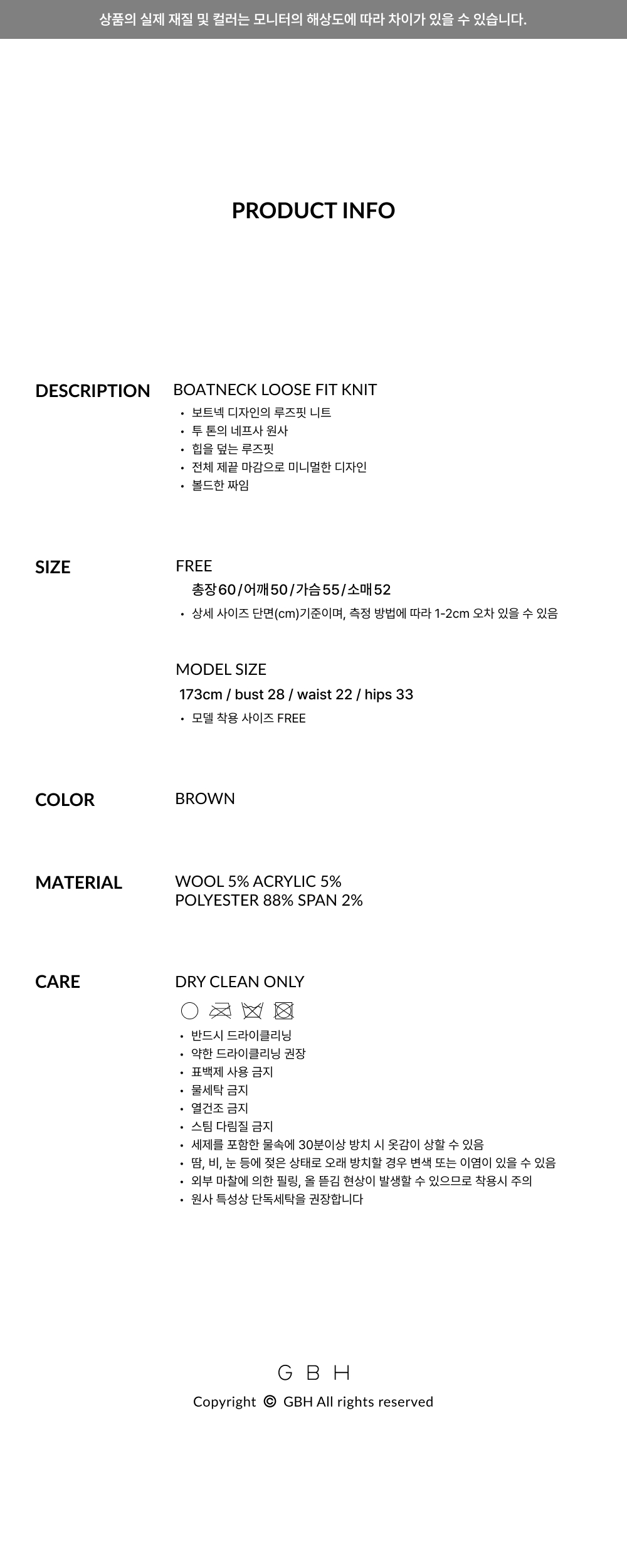 지비에이치 어페럴 보트넥 루즈 핏 니트 / 브라운