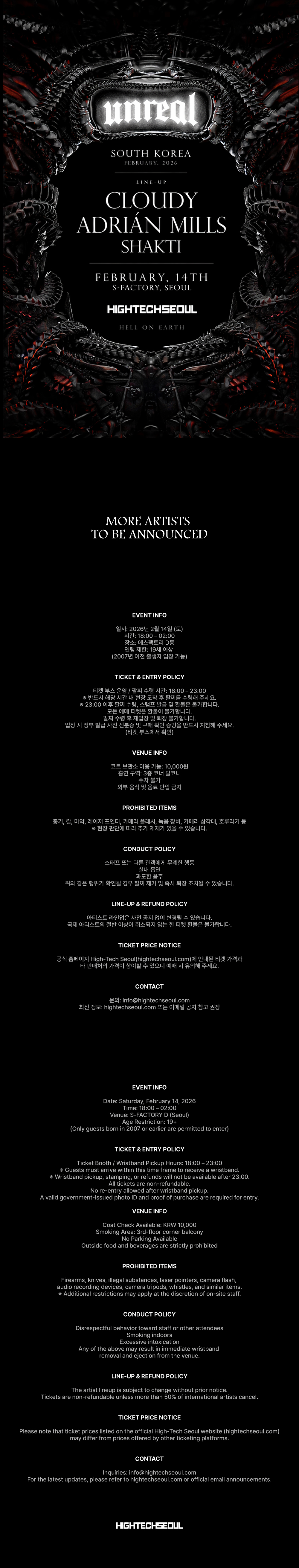 HIGH-TECH SEOUL x UNREAL presents CLOUDY x ADRIÁN MILLS x SHAKTI
