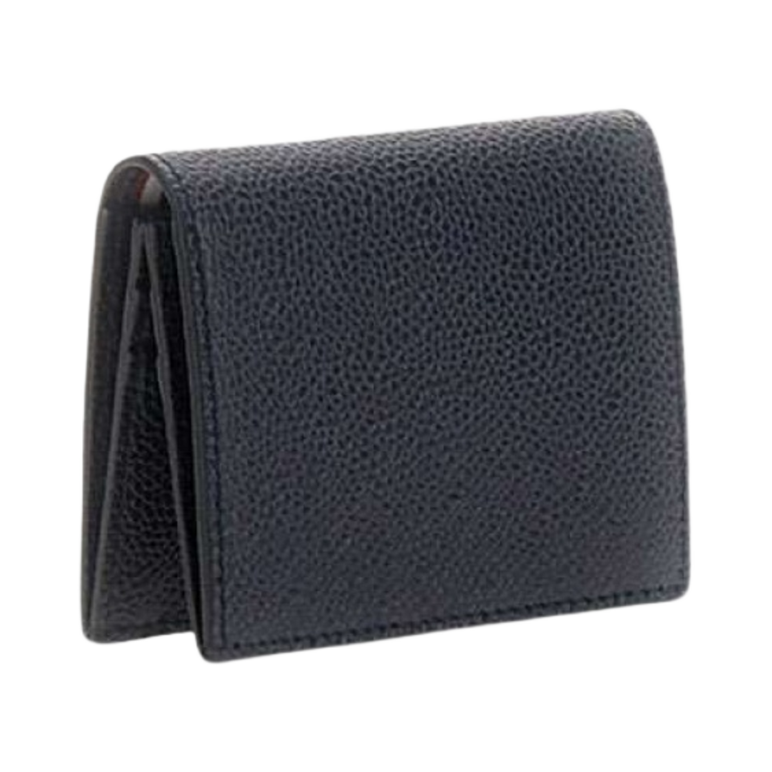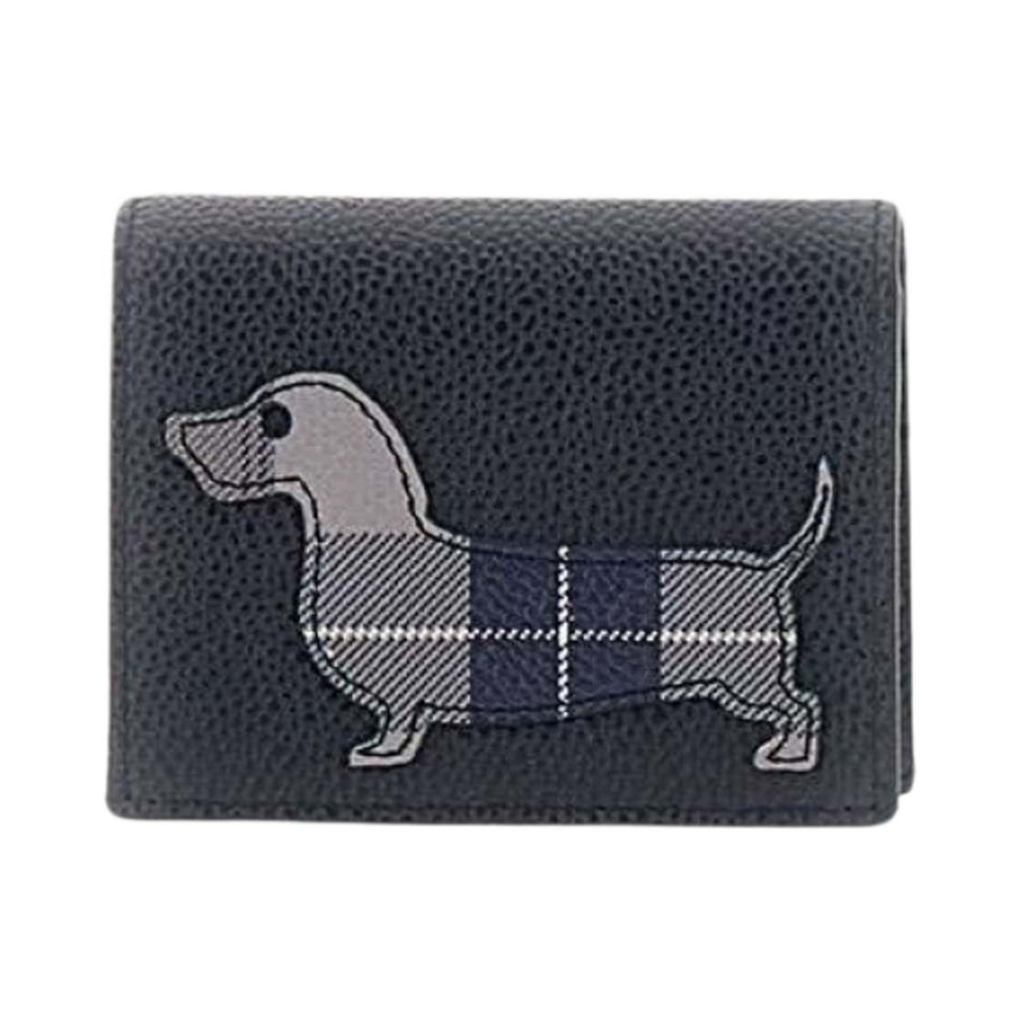 Thom Browne Tartan Pebble Grain Leather Hector Applique Double Card Holder Navy