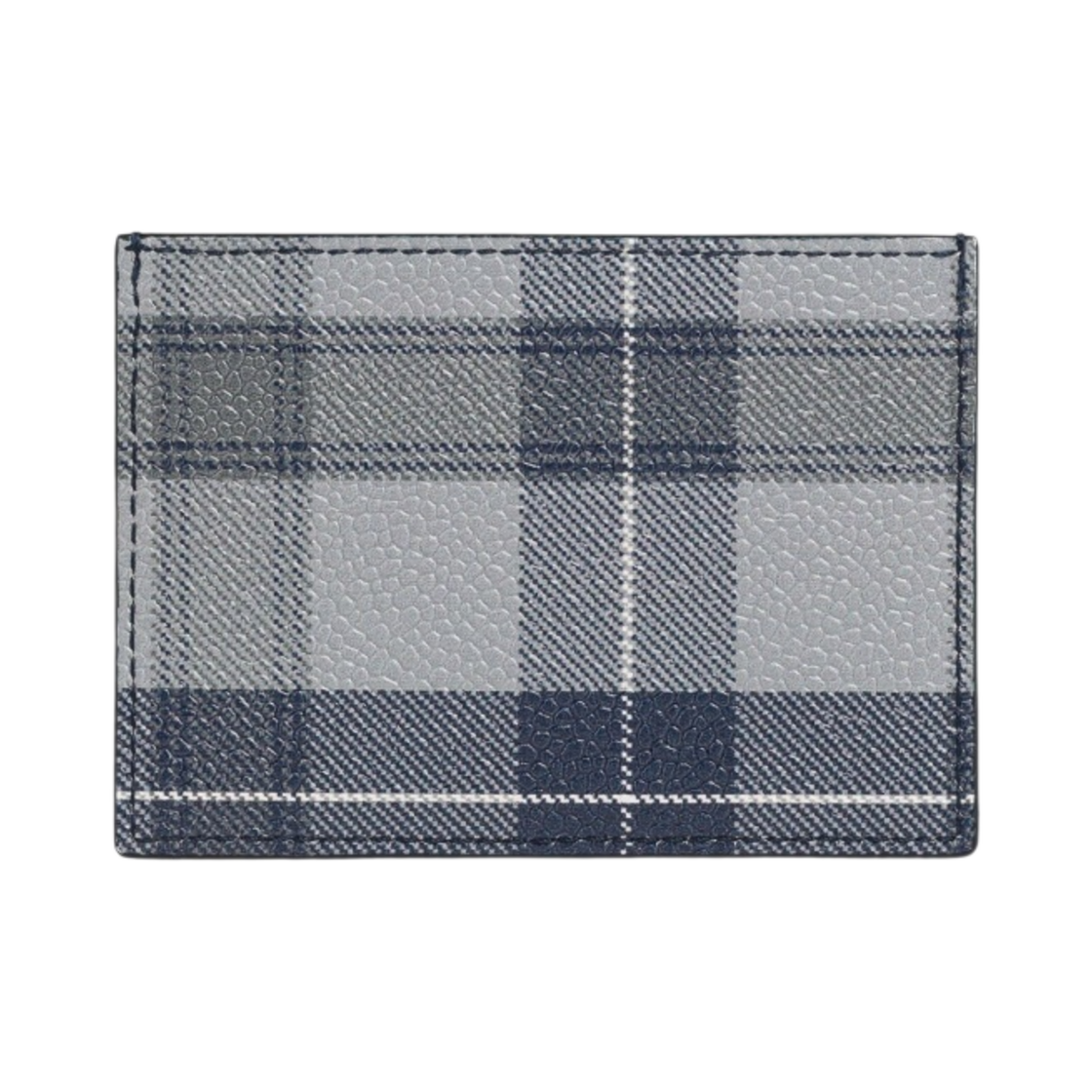 Thom Browne Tartan Pebble Grain Leather Single Card Holder Medium Grey