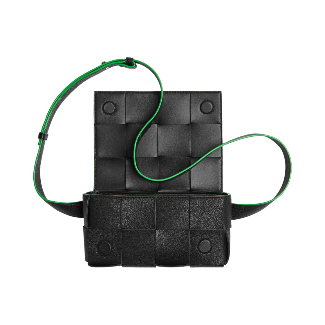 Bottega Veneta Grained Leather Mini Cassette Belt Bag Black Parakeet