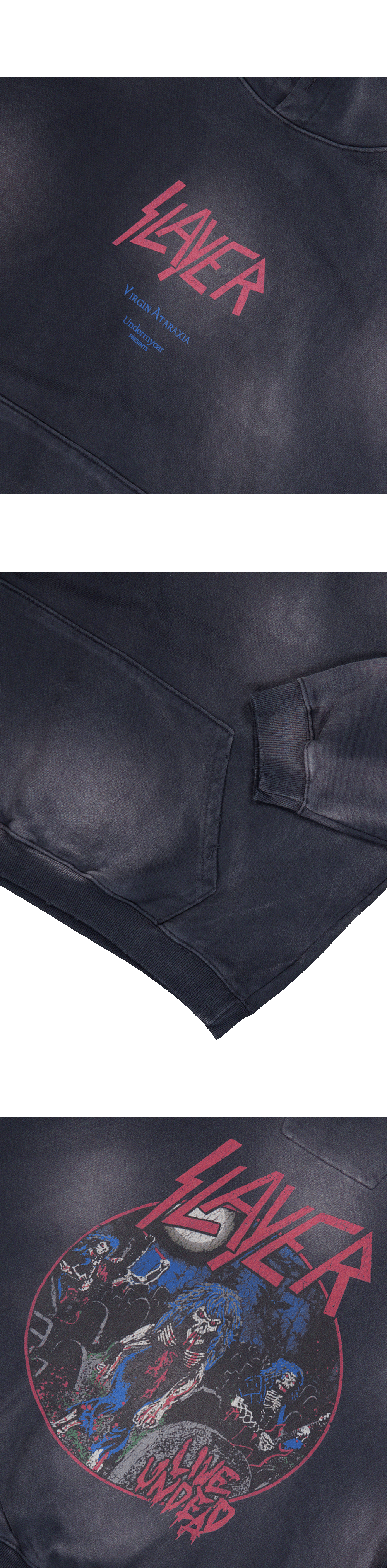 슬레이어 언더마이카 라이브 언데드 빈티지 워시드 후디 네이비