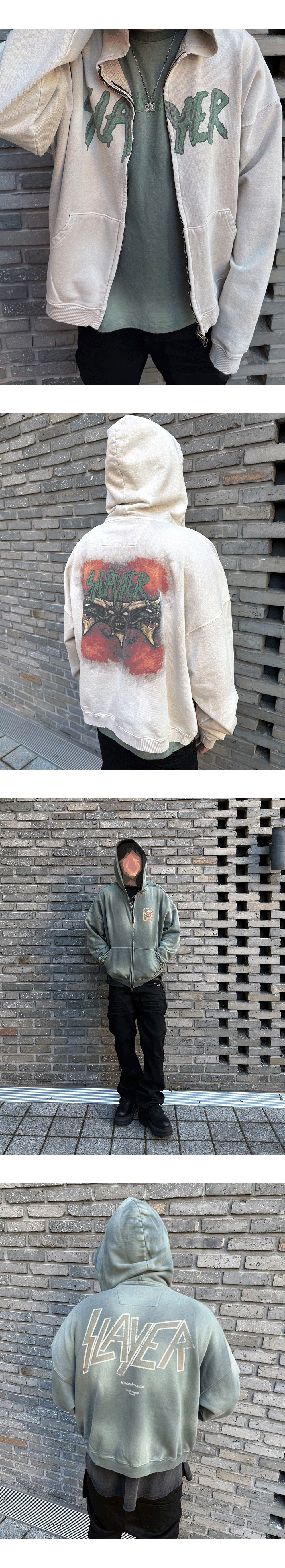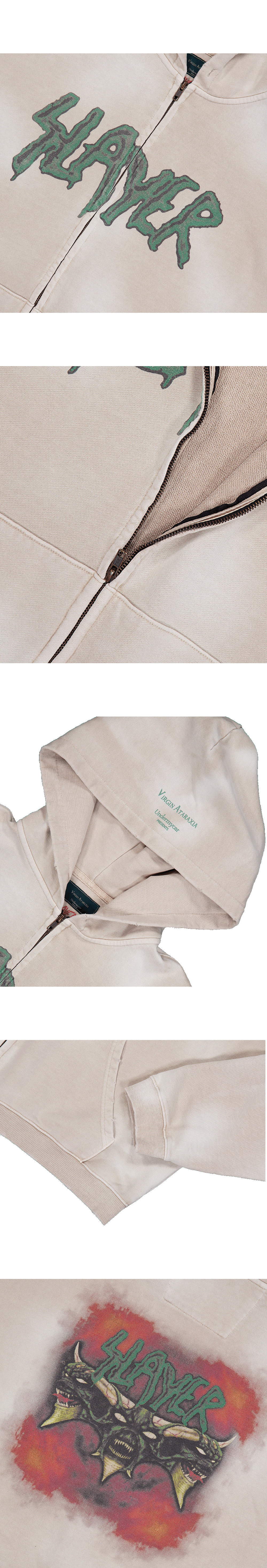 슬레이어 언더마이카 데몬 헤즈 인 플레임즈 빈티지 워시드 후드 집업 탄
