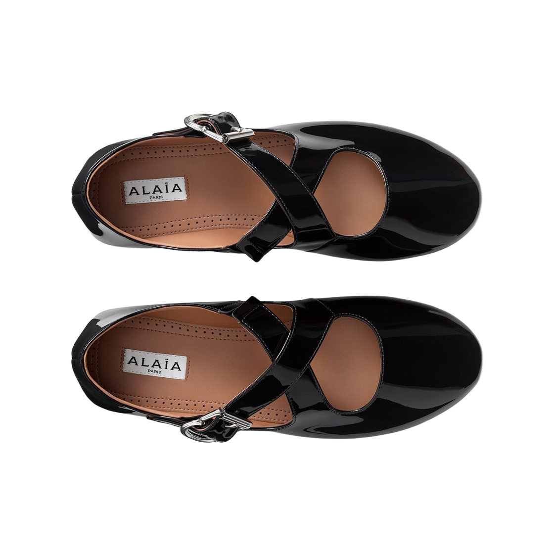 (W) 알라이아 페이턴트 카프스킨 크리스 크로스 발레 플랫 블랙