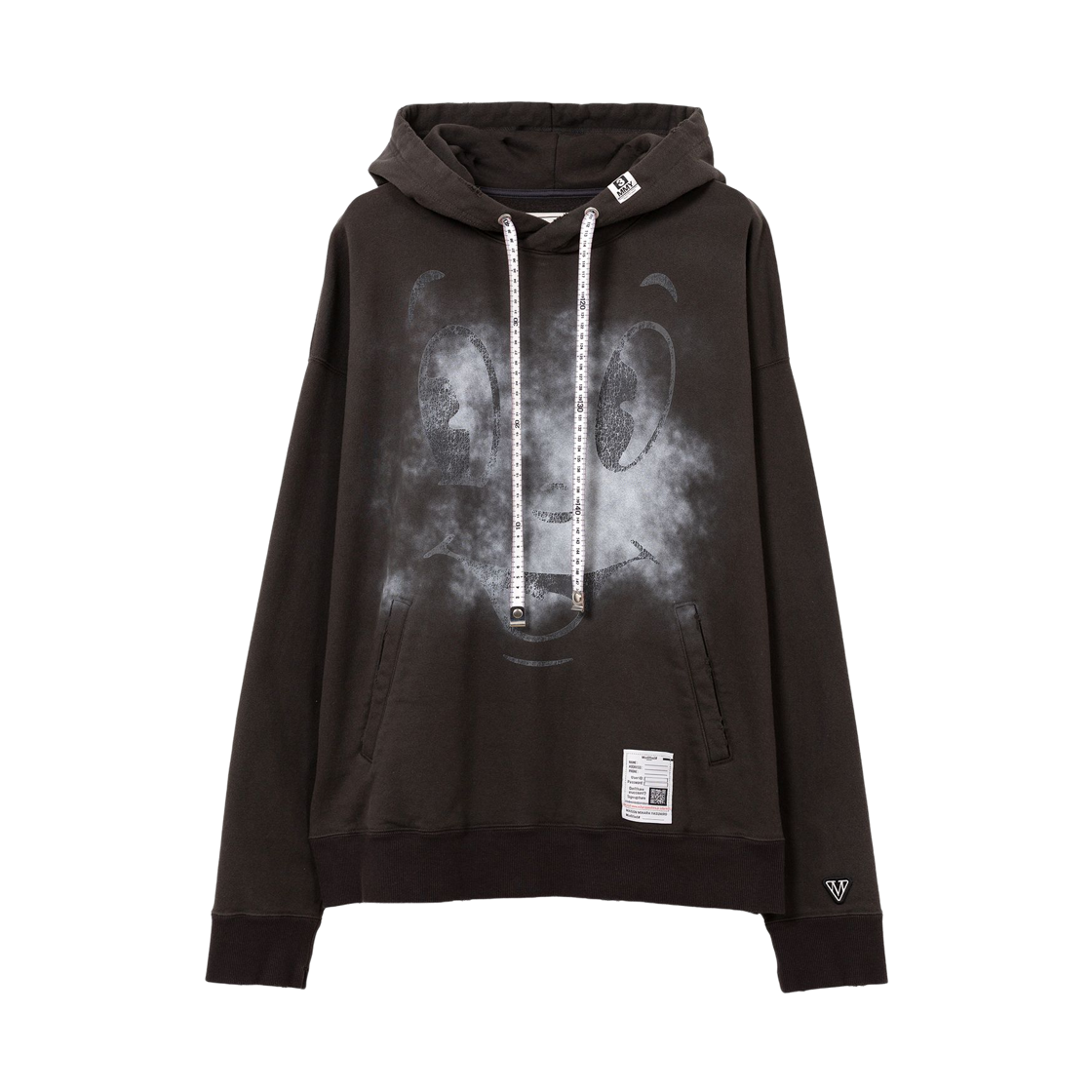 메종 미하라 야스히로 해피 페이스 프린트 디스트레스드 후드 블랙