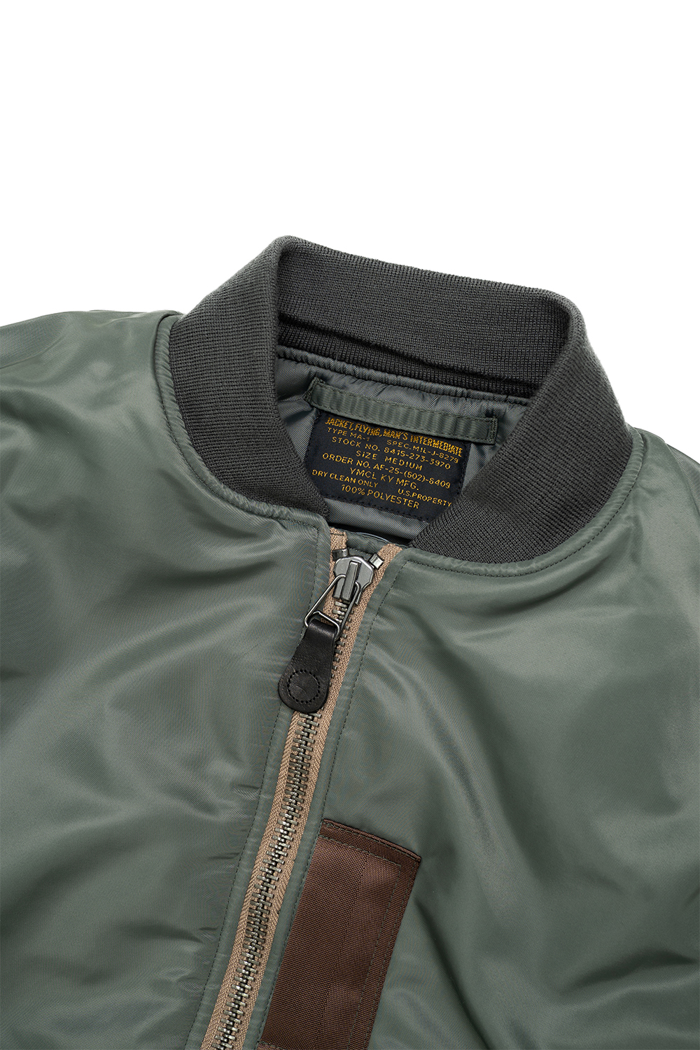 YMCL KY U.S. Type MA-1 Flight Jacket - Sage MA-1은 미 공군 독립과 제트기 도입이라는 배경에서 탄생했습니다. 기존 B-15 재킷의 큰 무스탕 깃이 헬멧에 간섭되어 리브 니트 깃으로 변경되었습니다. 이 아이템은 초기형(MIL-J-8279) 모델입니다. 초기형에만 탑재된 ICS 루프, 산소 탭, 내부 포켓 등의 디테일이 충실히 재현되었습니다. * Shell : Nylon 100% * Linning : Nylon 100% * Filling : Polyester 100% * Rib : Acrylic 90% / Wool 10% * YMCL KY 는 합리적인 가격으로 제품을 제공하기 위하여 별도의 포장이 존재하지 않습니다. * 빛에 의한 제품의 색감 차이가 존재 할 수 있습니다. * Made in China