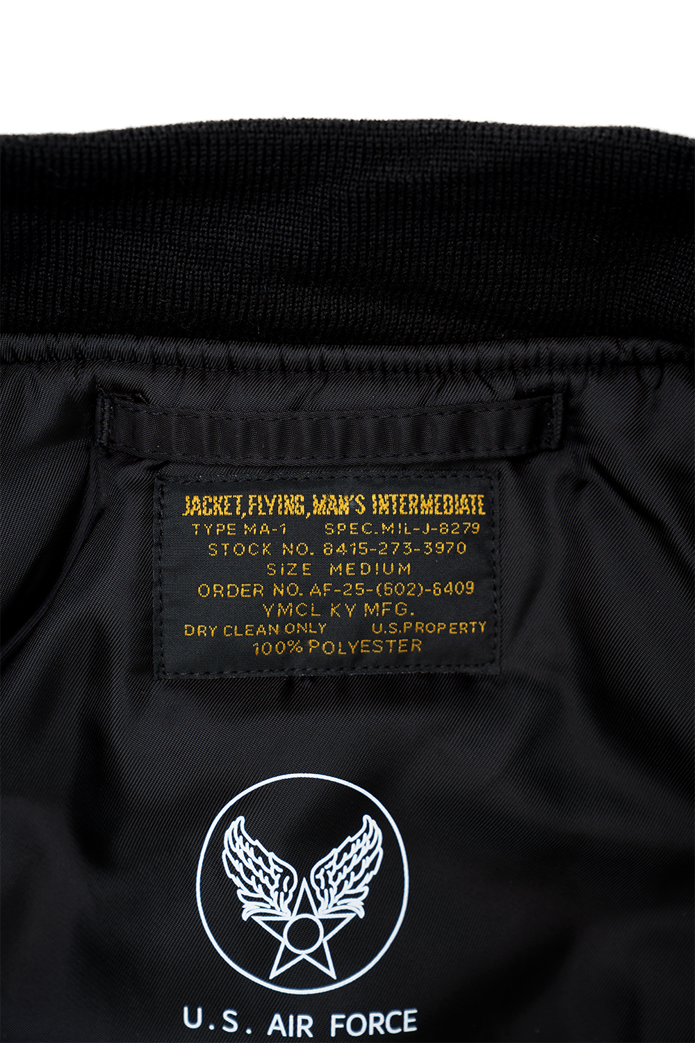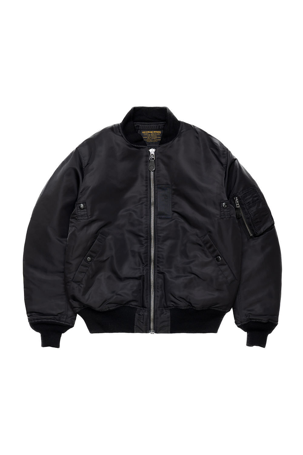YMCL KY U.S. Type MA-1 Flight Jacket - Black MA-1은 미 공군 독립과 제트기 도입이라는 배경에서 탄생했습니다. 기존 B-15 재킷의 큰 무스탕 깃이 헬멧에 간섭되어 리브 니트 깃으로 변경되었습니다. 이 아이템은 초기형(MIL-J-8279) 모델입니다. 초기형에만 탑재된 ICS 루프, 산소 탭, 내부 포켓 등의 디테일이 충실히 재현되었습니다. * Shell : Nylon 100% * Linning : Nylon 100% * Filling : Polyester 100% * Rib : Acrylic 90% / Wool 10% * YMCL KY 는 합리적인 가격으로 제품을 제공하기 위하여 별도의 포장이 존재하지 않습니다. * 빛에 의한 제품의 색감 차이가 존재 할 수 있습니다. * Made in China