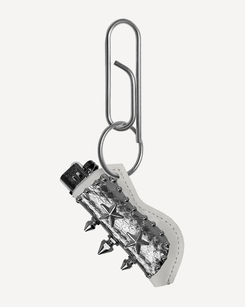 더트냅 더블 스타 스파이크 레더 라이터 홀더 키링 화이트