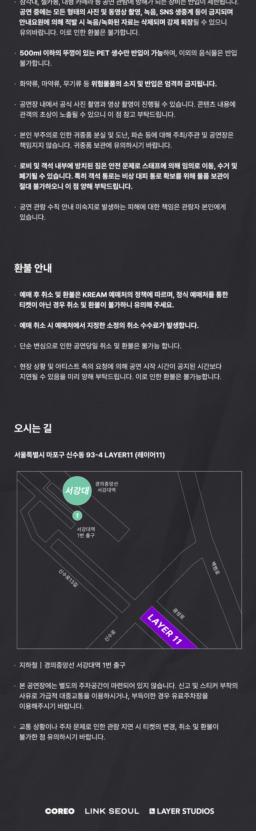 웹에서 예매하는 경우 반드시 예매 전, 팝업 차단 해제 후 진행 부탁드립니다. 지원이 중단된 IE(Internet Explorer) 브라우저 또는 다수의 브라우저로 동시 예매 진행 시 원활하지 않을 수 있습니다.