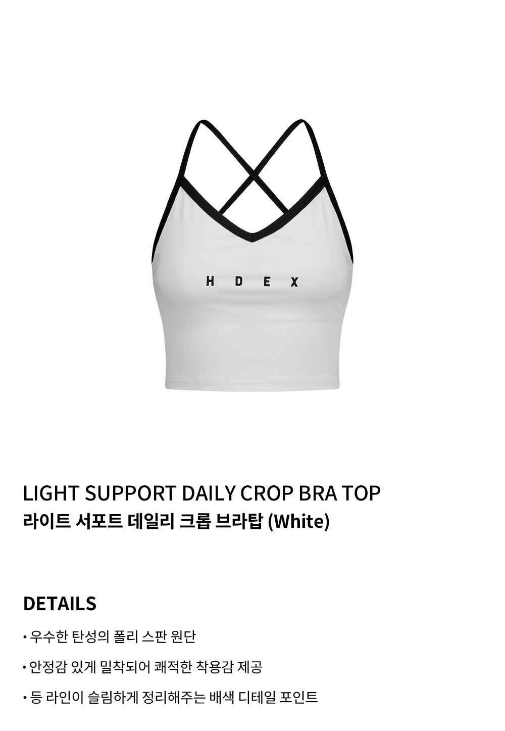 에이치덱스 라이트 서포트 데일리 크롭 브라탑 화이트