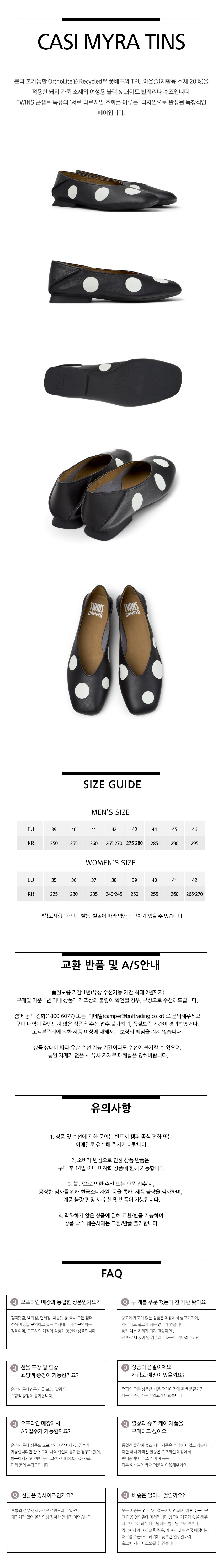 캠퍼 여성 카시미라 트윈스 플랫슈즈 블랙