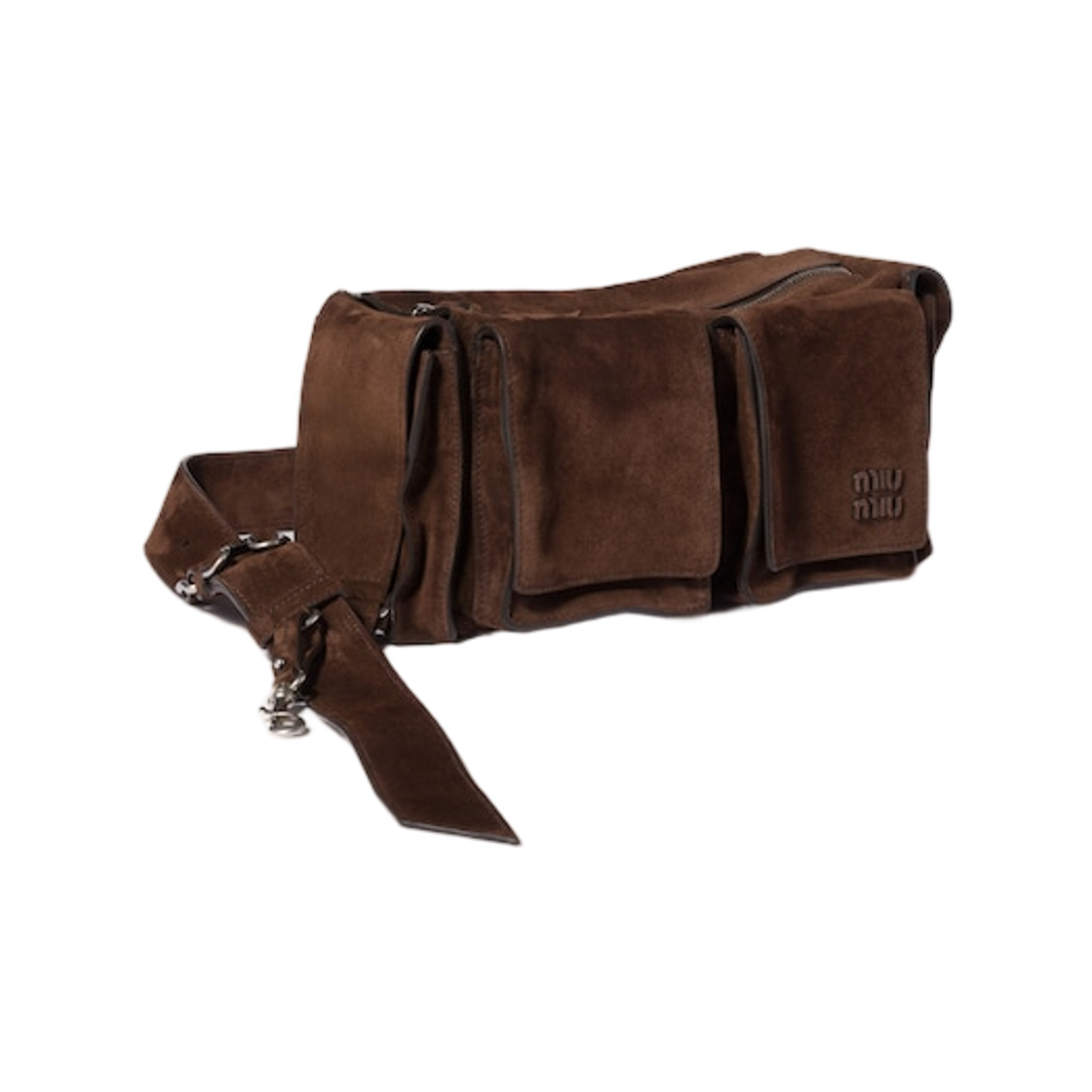 Miu Miu Utilitaire Suede Shoulder Bag Dark Brown