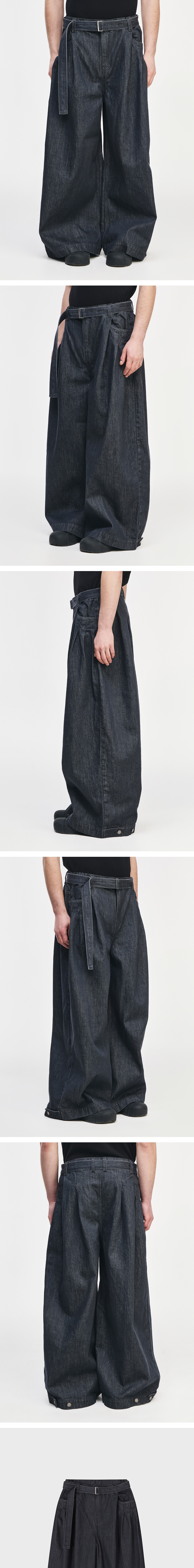 - SONGZIO 컬렉션 EDGEFOLD VOLUME DENIM PANTS - 부드러운 터치감의 워시드 데님 패브릭 - 전후면 턱과 턱 고정 스티치 디테일로 입체적인 실루엣 연출 - 허리 E-BAND 구성과 사각링 제원단 벨트 디테일 - 실루엣 조절이 가능한 밑단 비죠 디테일 - 와이드 실루엣 FABRICATION MADE IN KOREA