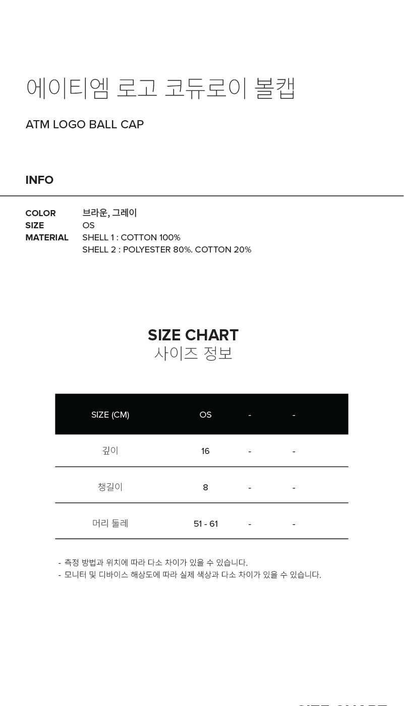 애프터매스 에이티엠 로고 코듀로이 볼 캡 브라운