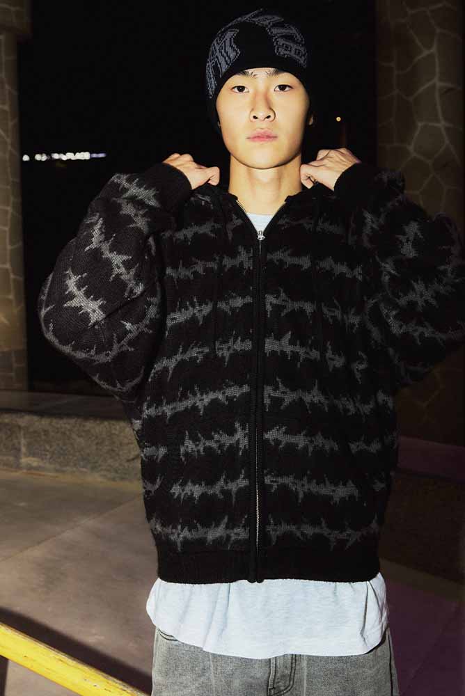 Aftermath Mohair Knit Zip Hoodie Black