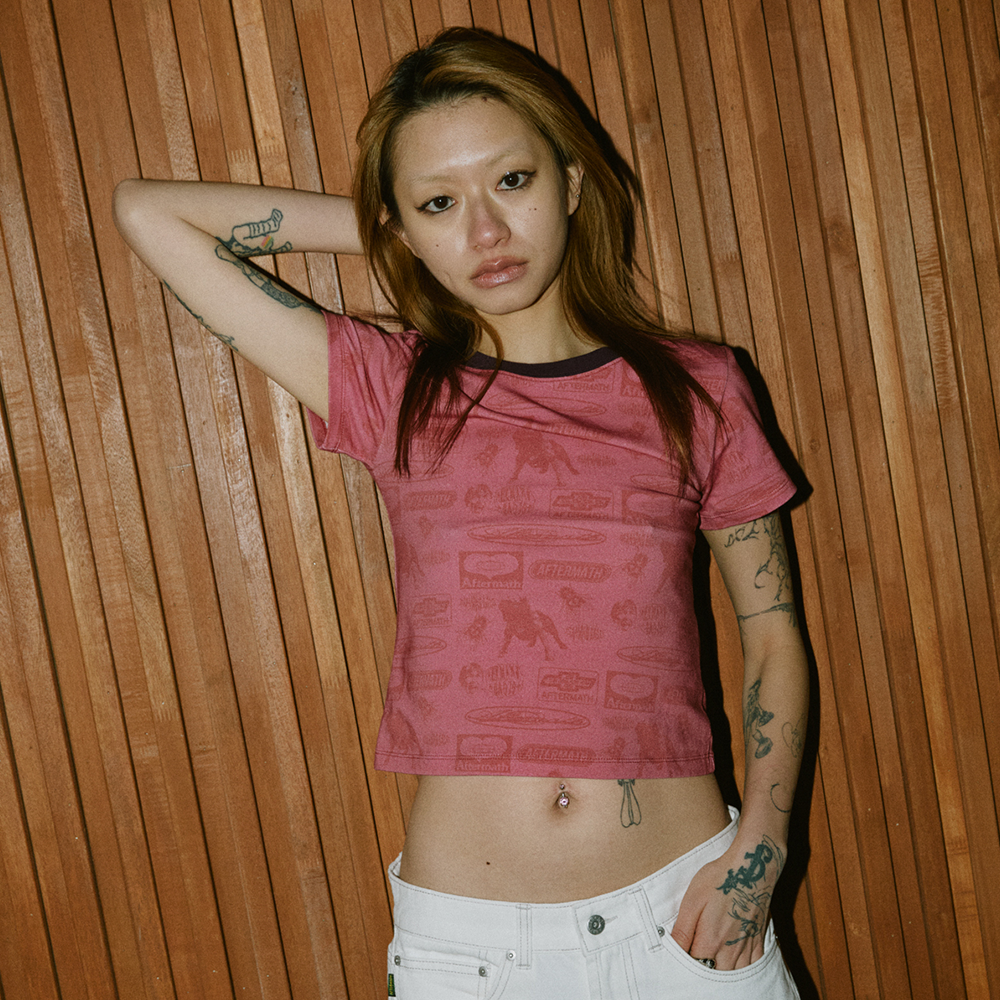 애프터매스 우먼스 풀 프린트 티 코랄 레드