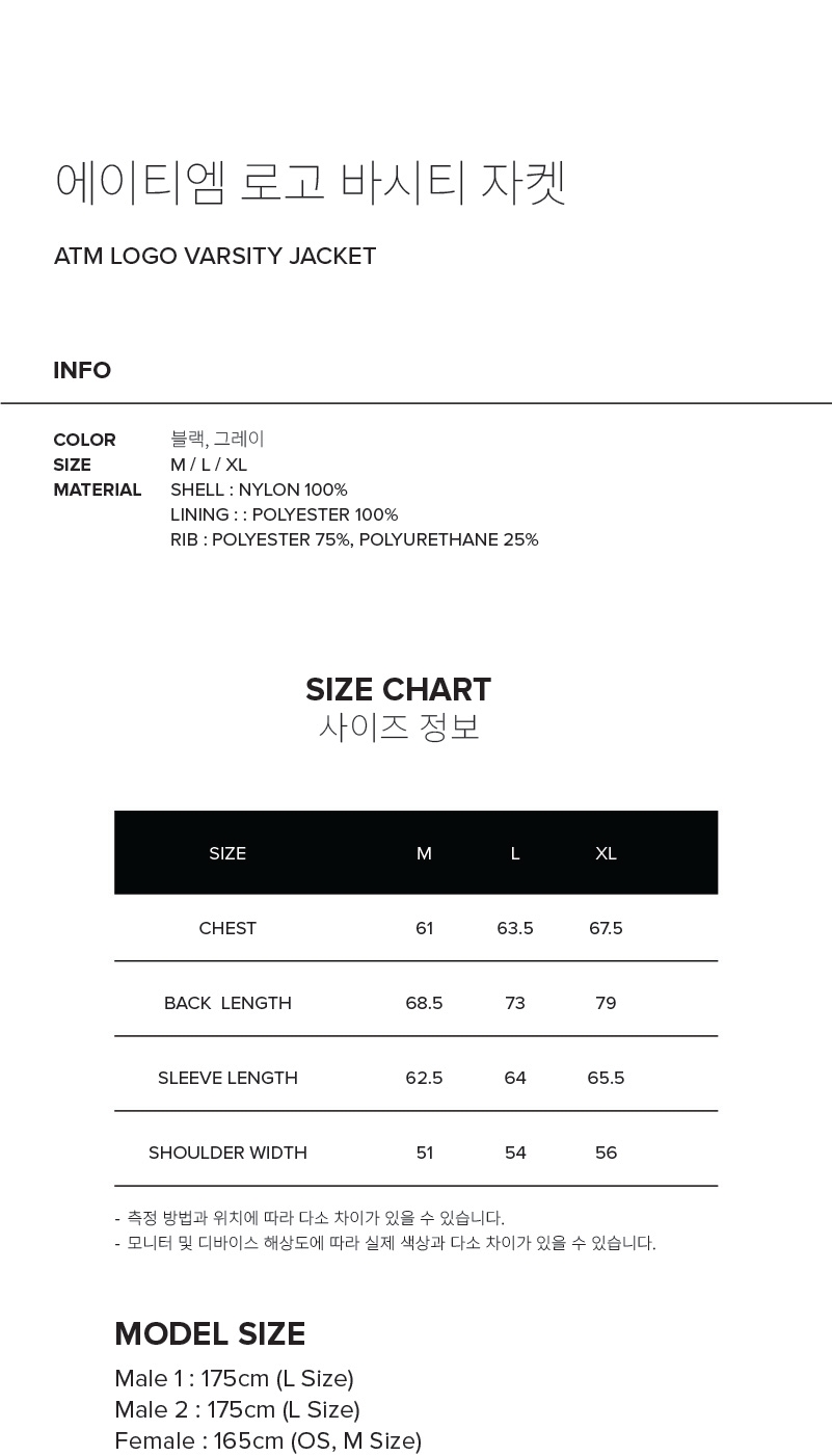 애프터매스 에이티엠 로고 바시티 자켓 그레이