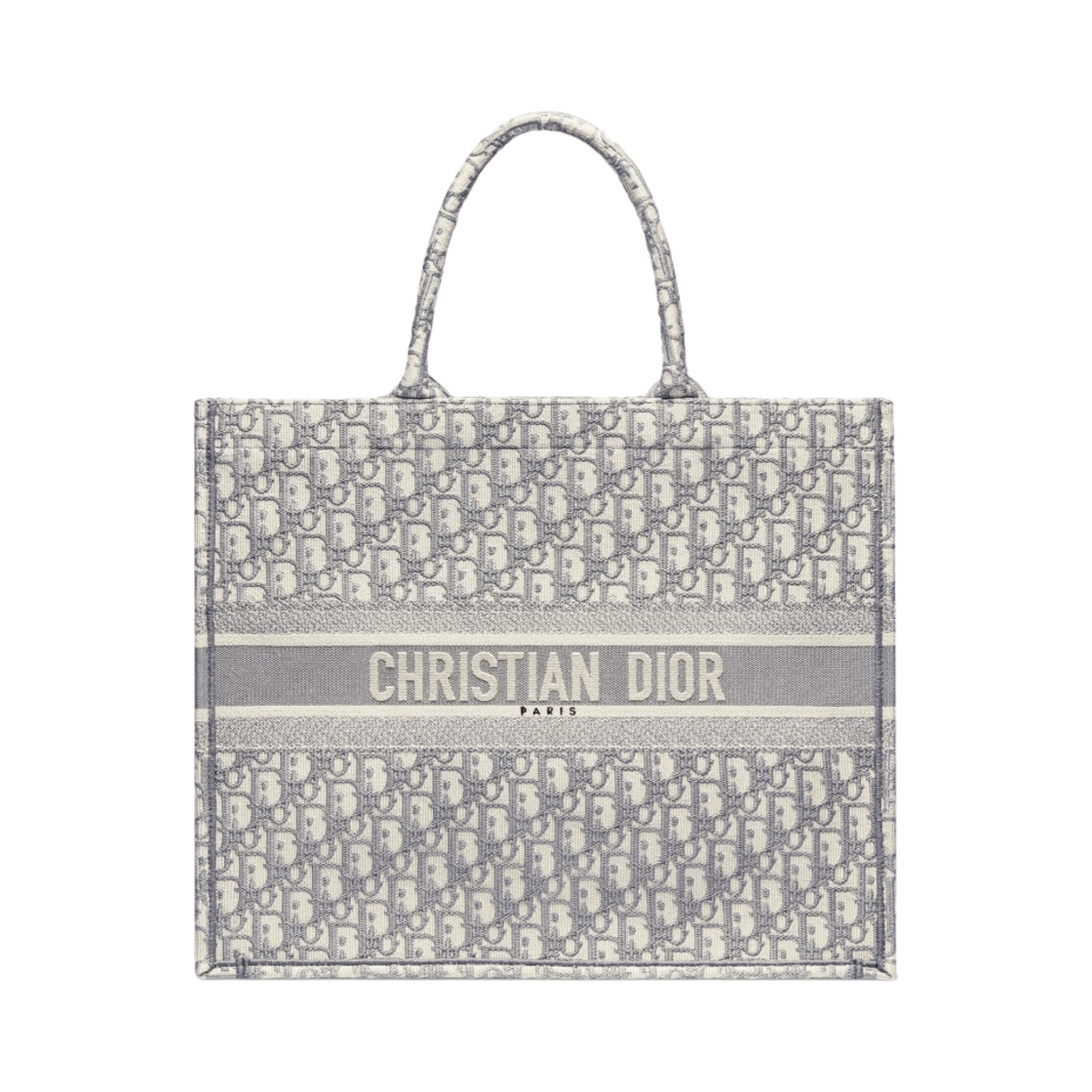 Dior Large Book Tote Grey Dior Oblique Embroidery