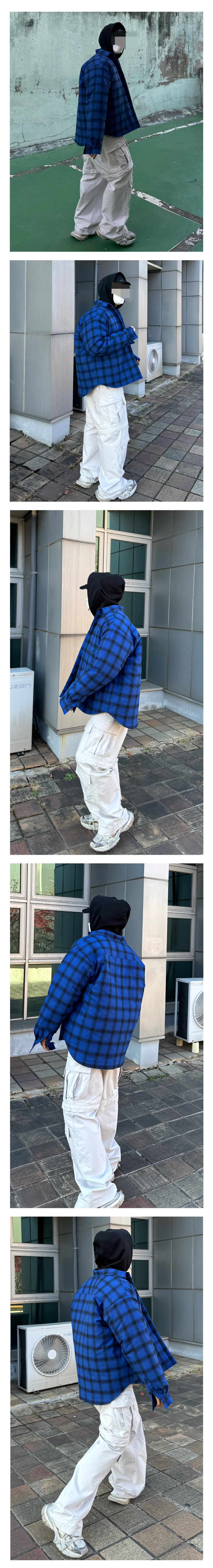 Large Fit Flannel Padded Shirts •소재: Cotton 100% •컬러: Blue / Black •사이즈: ONE •전면 포켓 x1 * 빈티지 가공 * 3oz 퀼팅 처리 안감 * 매우 오버핏 셔츠 입니다. * 뒷판 날개쪽 부분 턱 디테일 추가 * 기존의 셔츠 시리즈보다 한사이즈 커지고 암홀이 커졌습니다. *빈티지 가공 및 플란넬 원단 특성상 기모감 및 필링이 생기거나 존재할 수 있습니다. 이는 불량이 아닙니다.