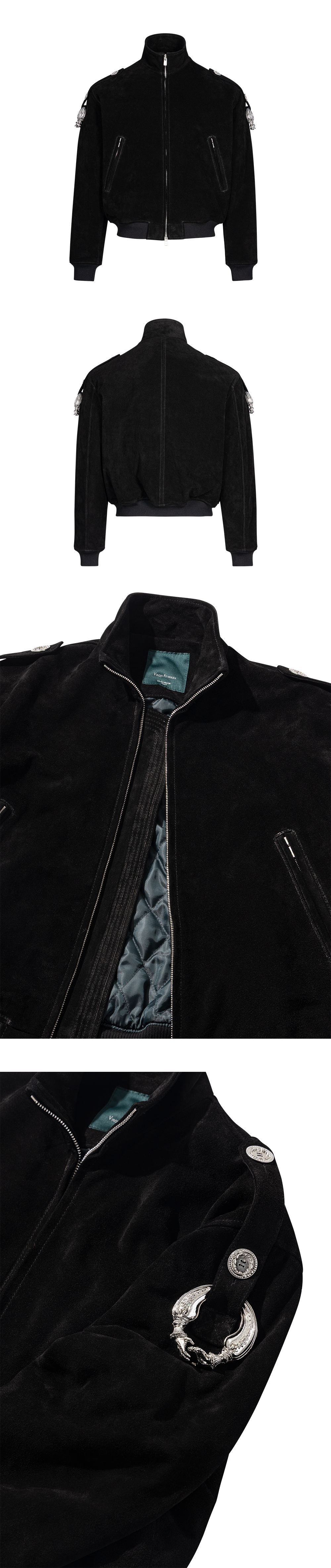 언더마이카 25FW 그래스핑 핸즈 오너멘털 에폴렛 스웨이드 재킷 블랙