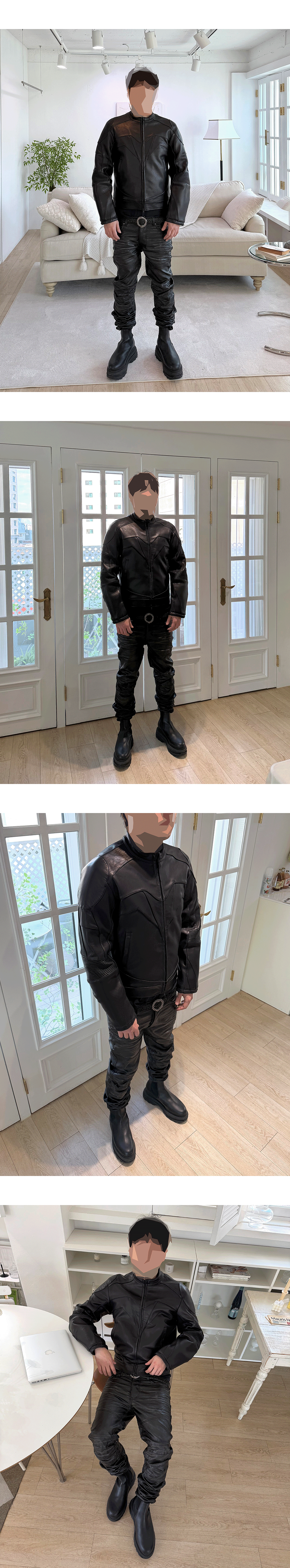 트리플 블랙 색상의 바이커 재킷 Model spec - 178cm / 70kg - Size 1 착용