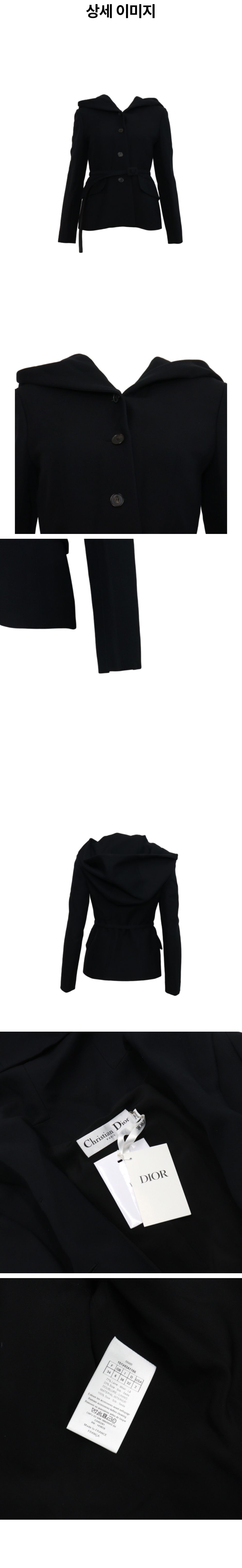 디올 151V43A1166 블랙 울 실크 벨티드 후드 여성 블레이저 자켓aa58527