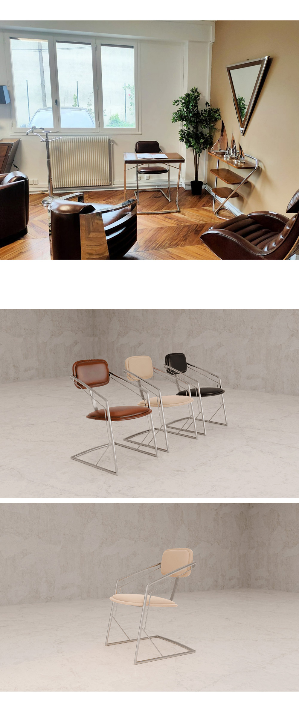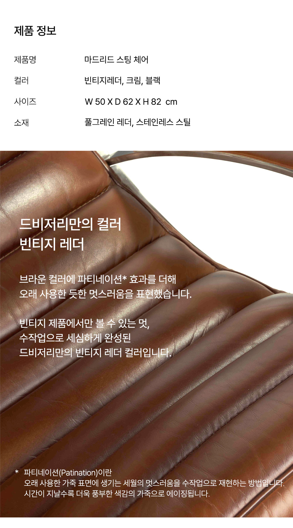 드비저리 프랑스 드비저리 마드리드 스팅 체어 서재 의자 빈티지레더