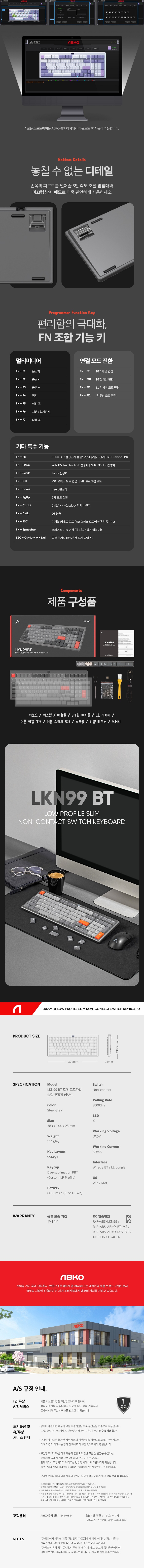 앱코 LKN99 BT 로우 프로파일 슬림 유 무선 블루투스 무접점 키보드