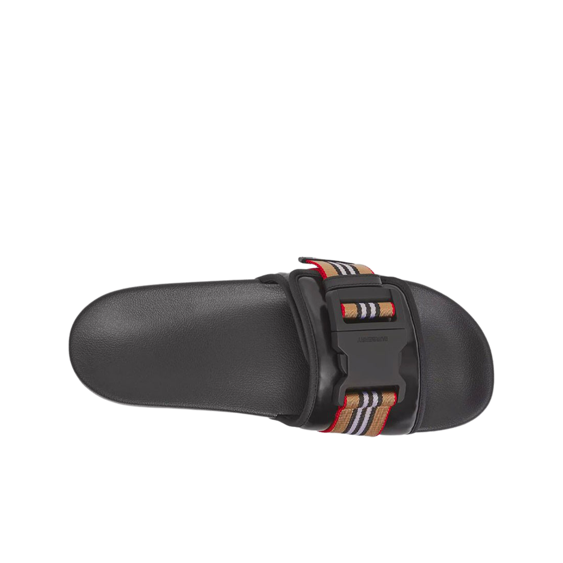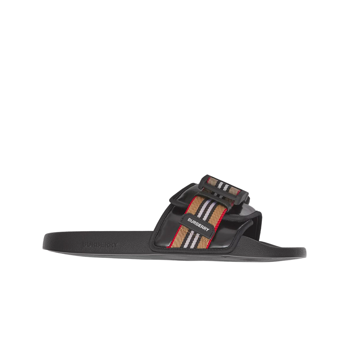 Burberry Icon Stripe Trim Coated Canvas Slides Black