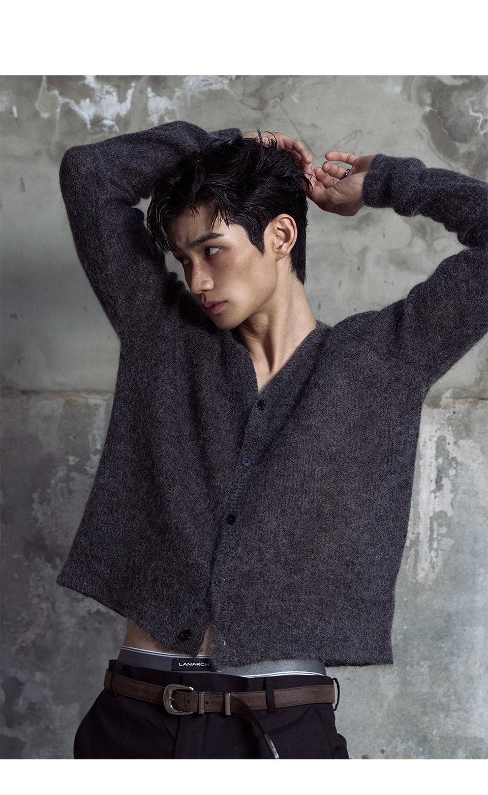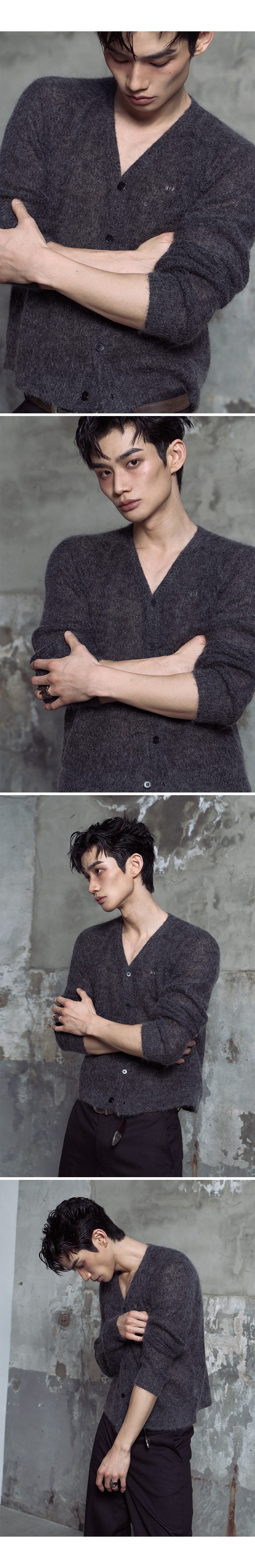 랜 아카이브 0092 모헤어 블렌드 크롭 가디건 - 그레이