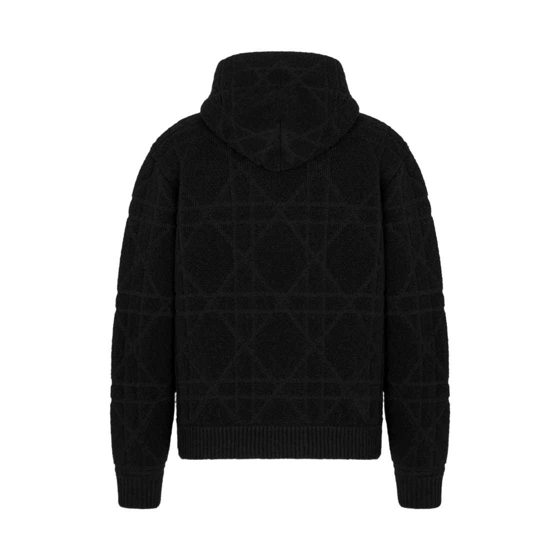 Dior Cotton Wool Blend Knit Cannage Hooded Sweatshirt Black