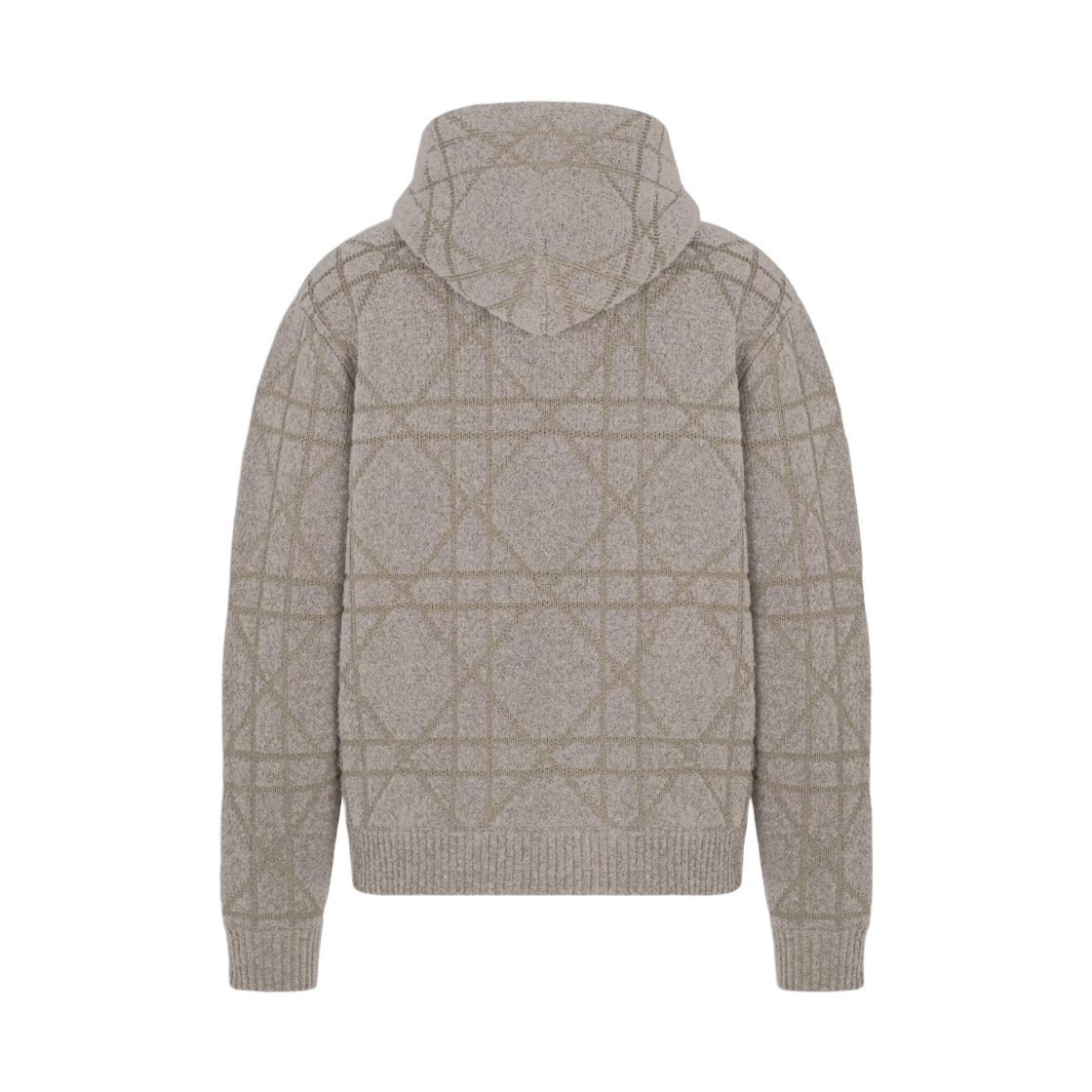 Dior Cotton Wool Blend Knit Cannage Hooded Sweatshirt Beige