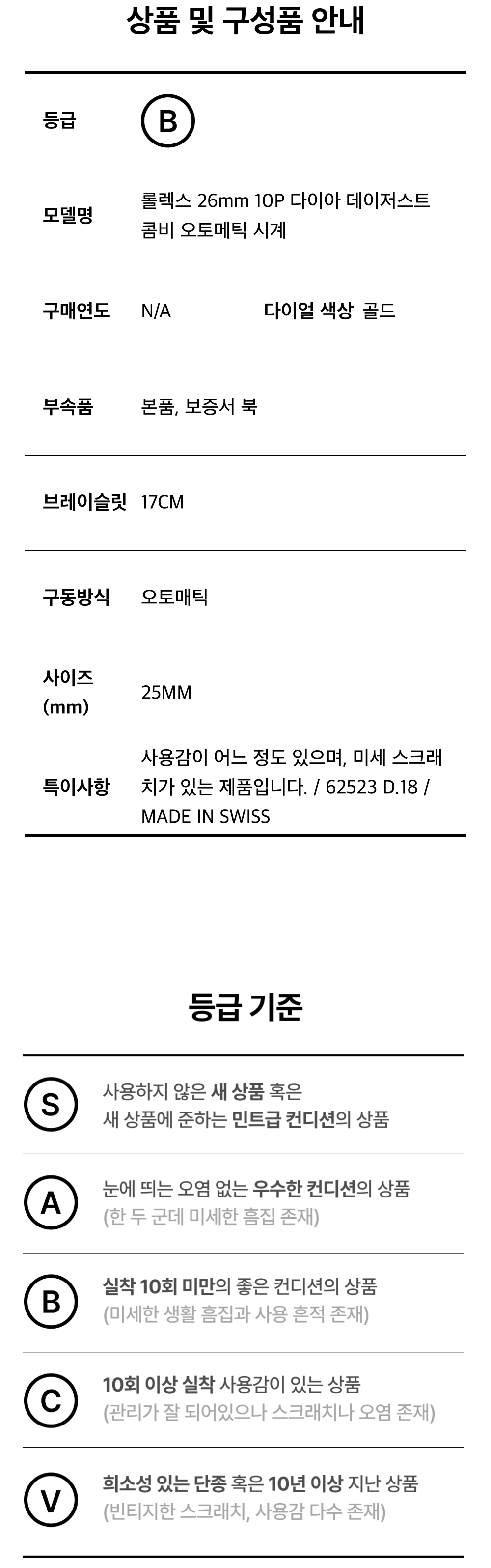 롤렉스 26mm 10P 다이아 데이저스트 콤비 오토메틱 시계 C-B43660