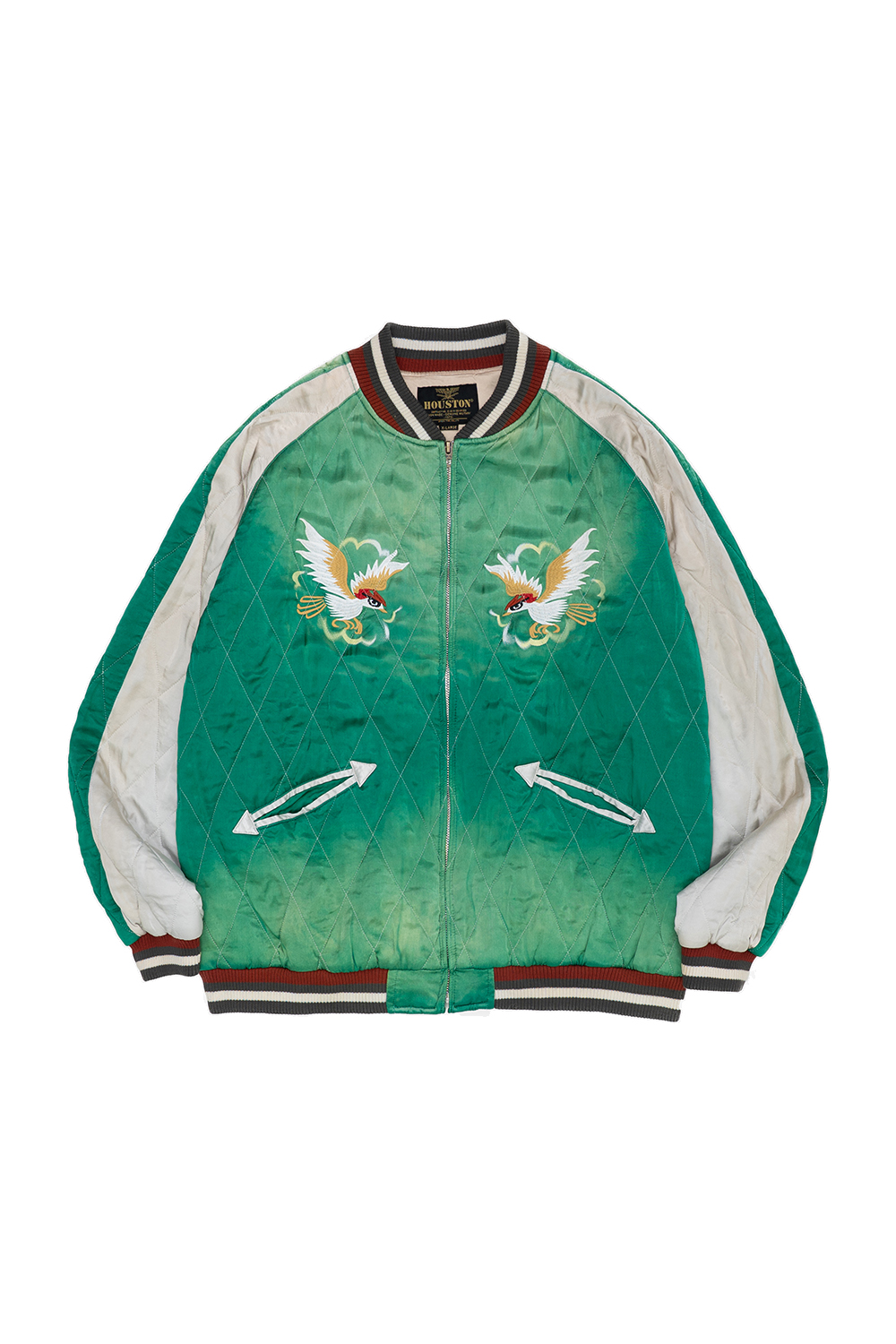 Houston Japan 51527VW Vintage Wash Souvenir Jacket (Map) - Green 'HOUSTON 스카잔 시리즈' 의 인기모델 지도 무늬 자수+프린트로 표현한 상품입니다. 퀄팅 사양의 스카잔을 부분적으로 페이드감을 재현한 것이 특징입니다. 유연 가공과 원워시로 빈티지한 분위기를 표현한 상품입니다. * Outer : Rayon 100% * Lining : Rayon 100% * Rib : Acrylic 100% * Filling : Polyester 100% * 일본 장인에 의한 가공 제품으로, 개체 차이가 존재하는 제품입니다. * 빛에 의한 제품의 색감 차이가 존재 할 수 있습니다. * Made In China