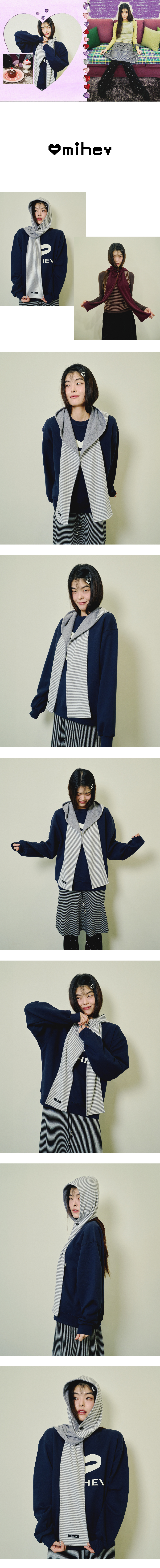 미헤브 리버시블 토글 버튼 후드 머플러 멜란지