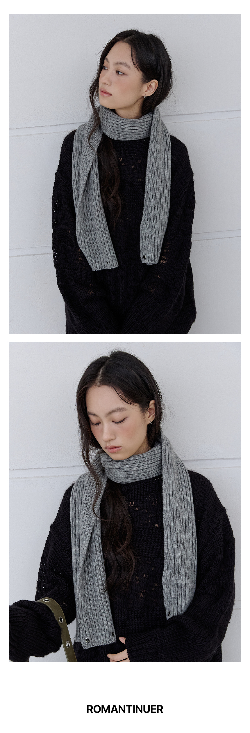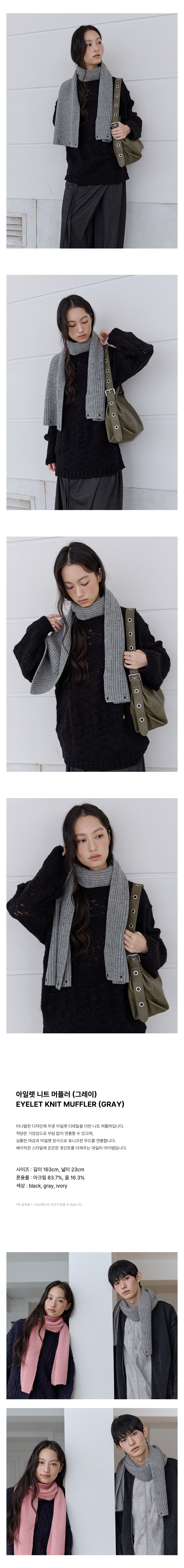 로맨티누어 아일렛 니트 머플러 - 그레이
