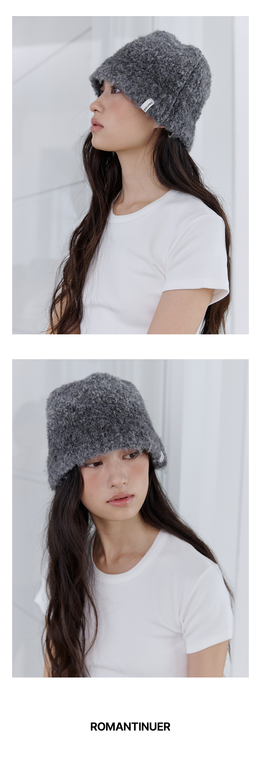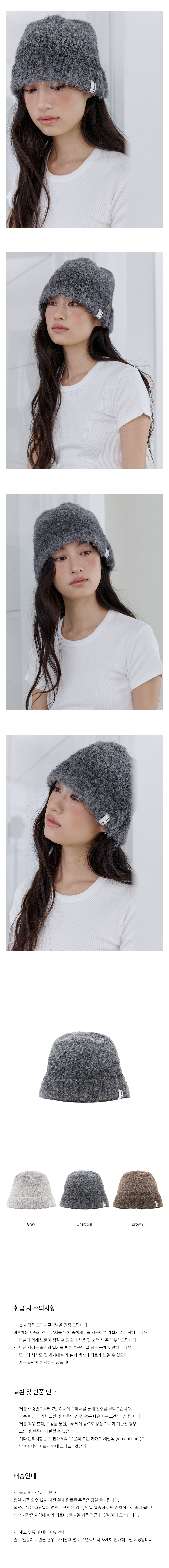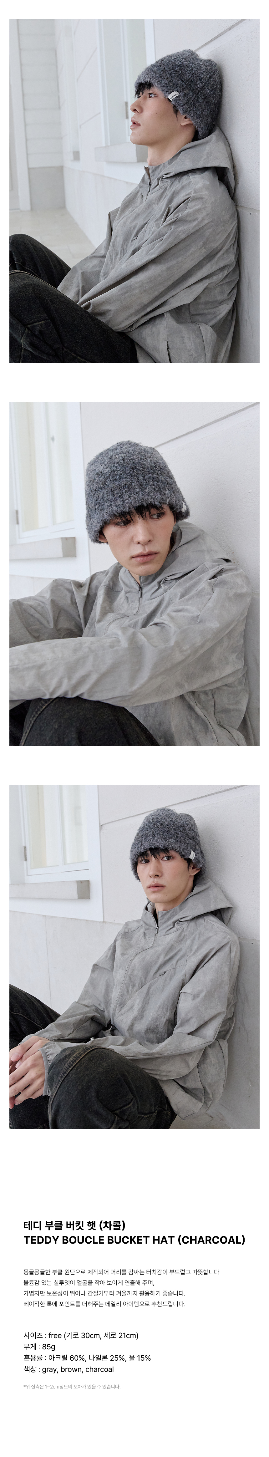 로맨티누어 테디 부클 버킷 햇 - 차콜